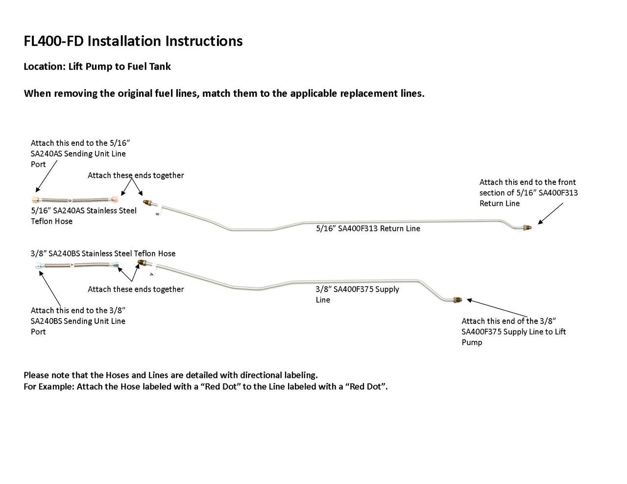 Chevy Truck Rear Fuel Line Set 1999 Reg Cab 8 ft Bed 2WD Diesel FL400-FD1D