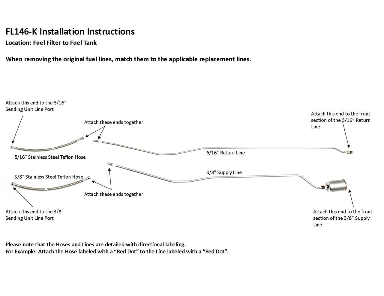 1 supply line 3/8", 1 return line 5/16", hoses to sending unit connection, 1 fuel filter