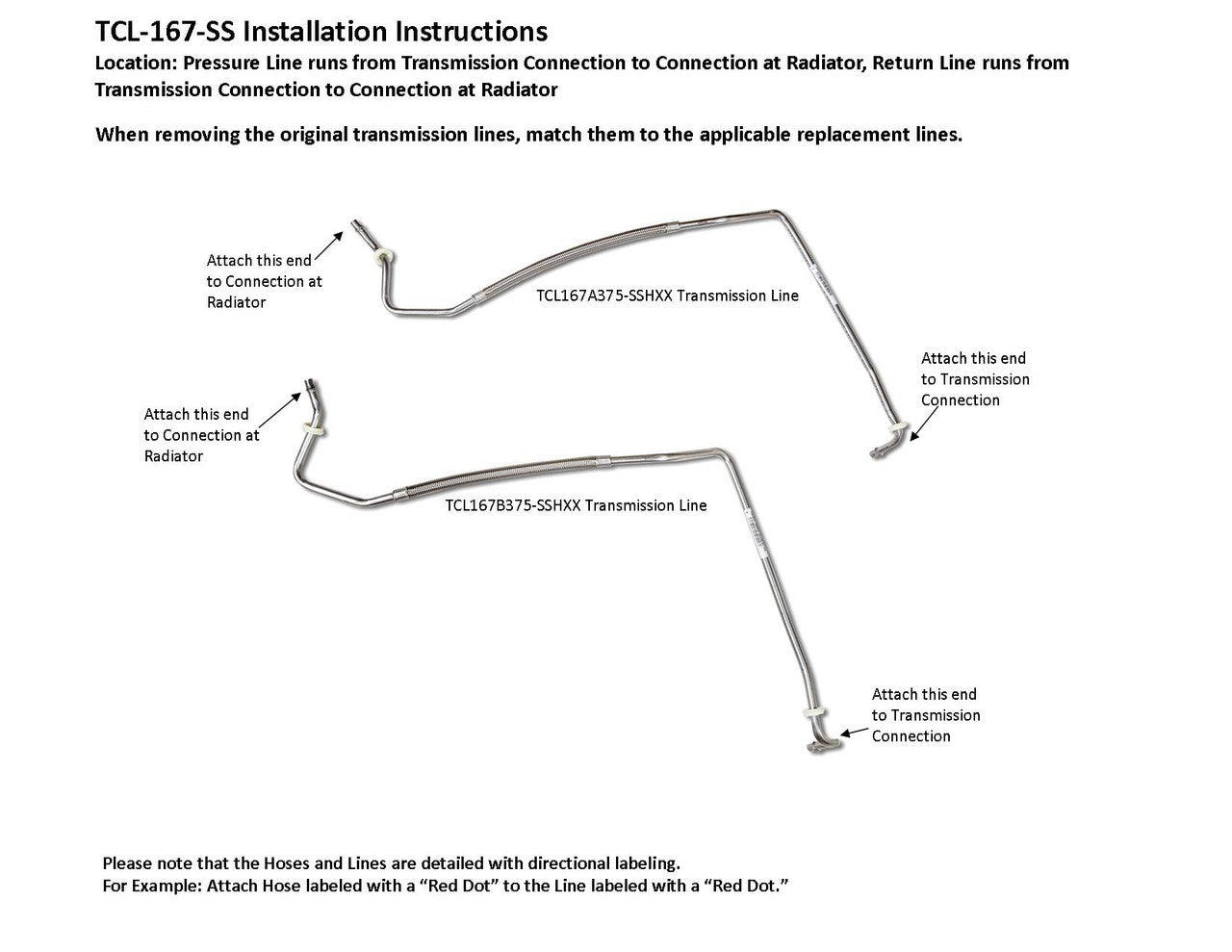 Pressure Line runs from Transmission Connections to Connections at Radiator, Return Line runs from Transmission Connections to Connections at Radiator