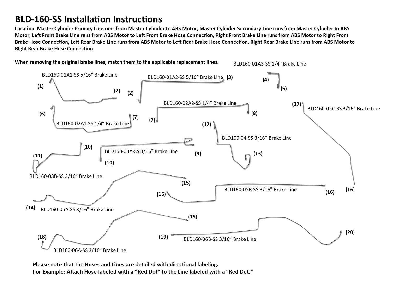 Please Note: Before installing your brake line, shipping bends will need to be removed from the lines labeled BLD160-05A-SS, BLD160-05B-SS, BLD160-06A-SS and BLD160-06B-SS. See the video below on how to remove the shipping bend