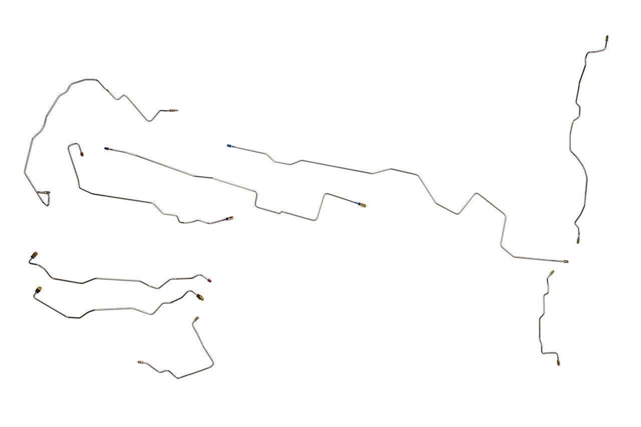 1 Master Cylinder Primary Line 3/16", 1 Master Cylinder Secondary Line 3/16", 1 Left Front Brake Line 3/16", 1 Right Front Brake Line 3/16", 1 Intermediate Brake Line 3/16" (in 3 easy to install sections), 1 Rear Axle Crossover Line (2 sections), Does NOT include Brake Hoses