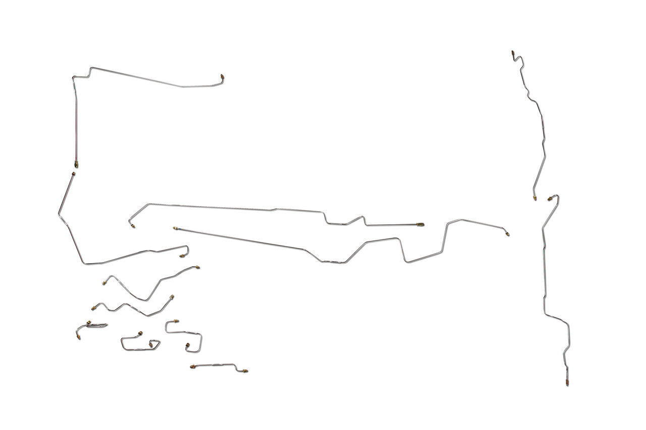 2 Master Cylinder Primary Brake Lines 3/16", 2 Master Cylinder Secondary Brake Lines 3/16", 1 Left Front Brake Line 3/16", 1 Right Front Brake Line 3/16" (in 2 easy to install sections), 1 Intermediate Brake Line 3/16" (in 3 easy to install sections), 1 Rear Axle Crossover Line 3/16" (2 sections), Does NOT include Brake Hoses