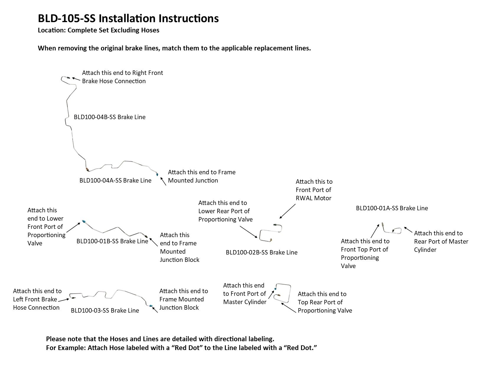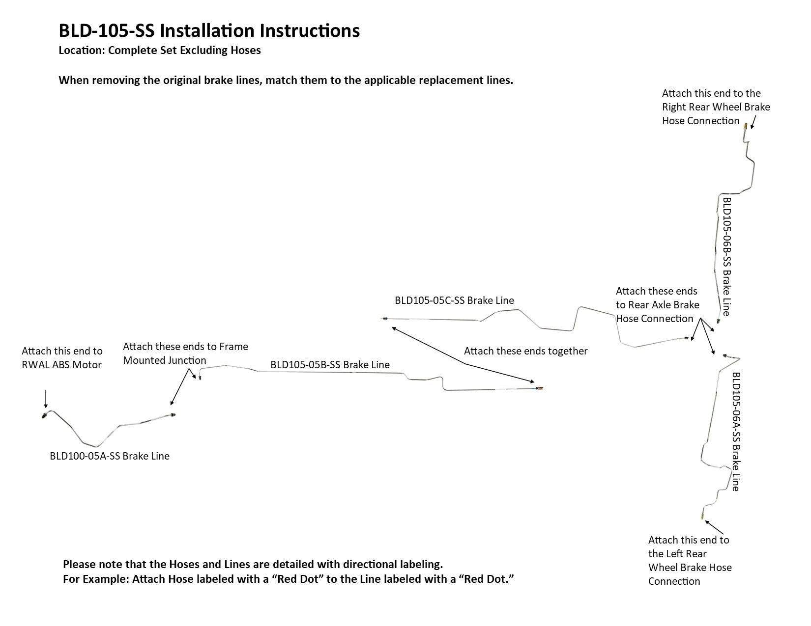 Please Note: Before installing your brake line, a shipping bend will need to be removed from the lines labeled BLD105-05B-SS and BLD105-05C-SS. See the video below on how to remove the shipping bend
