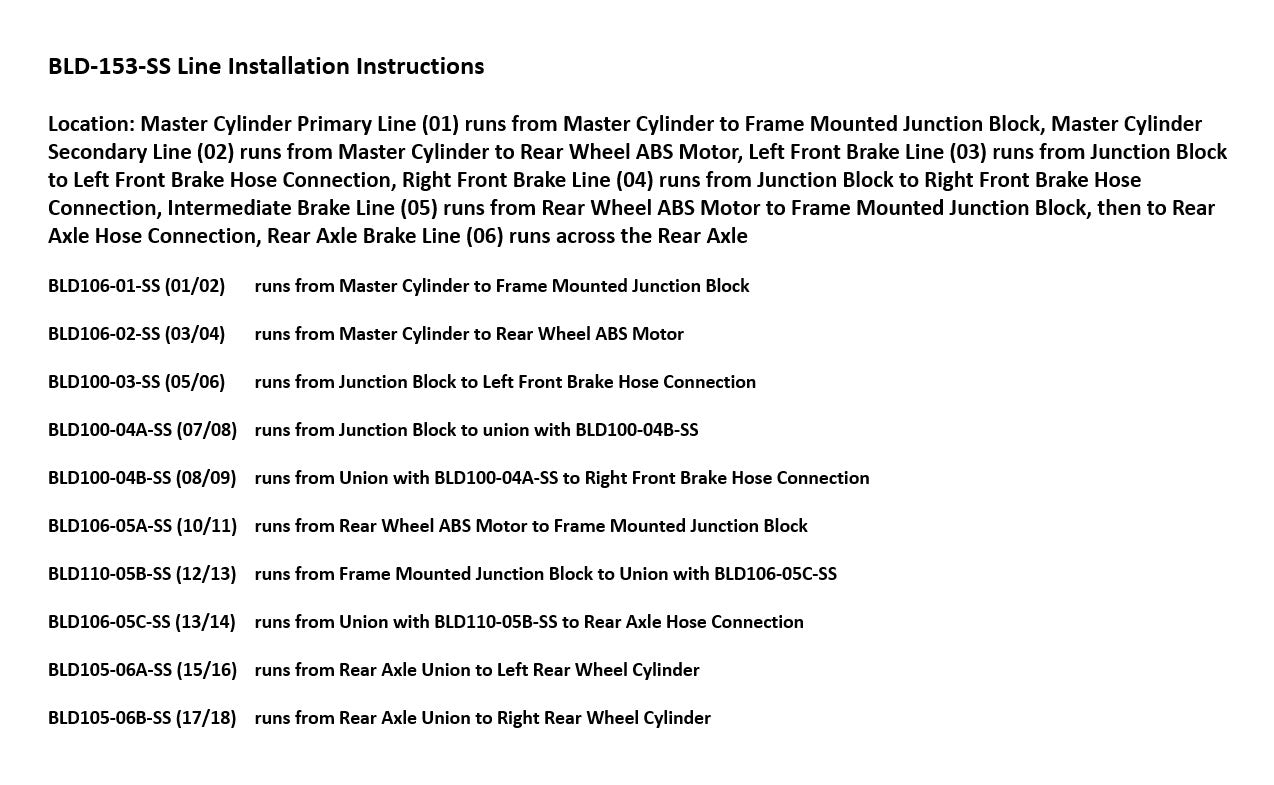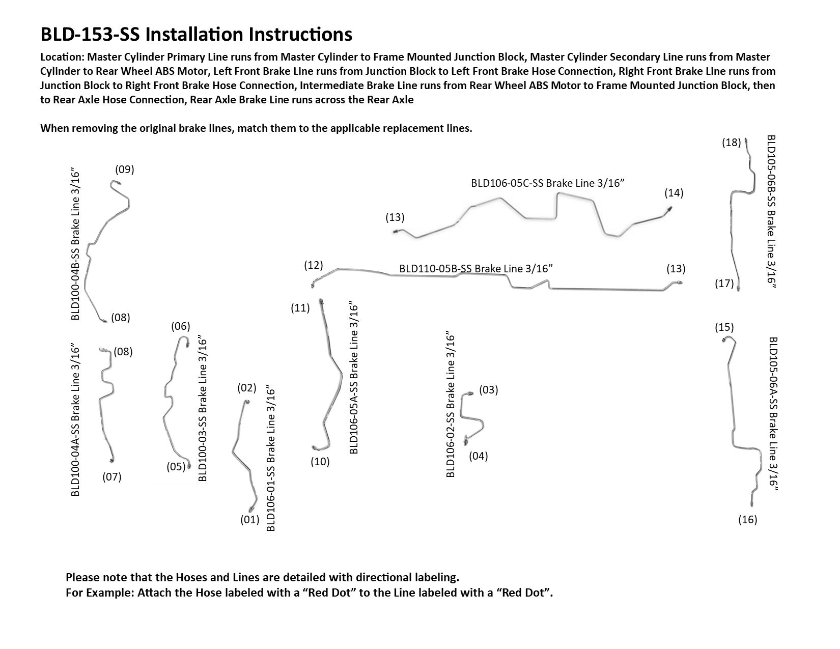 Please Note: Before installing your brake line, a shipping bend will need to be removed from the line labeled BLD110-05B-SS. See the video below on how to remove the shipping bend