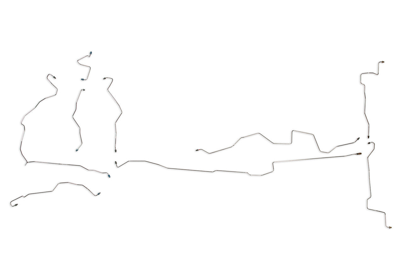 1 Master Cylinder Primary Line 3/16", 1 Master Cylinder Secondary Line 3/16", 1 Left Front Brake Line 3/16", 1 Right Front Brake Line 3/16" (in 2 easy to install sections), 1 Intermediate Brake Line 3/16" (in 2 easy to install sections), 1 Rear Axle Crossover Line 3/16" (2 sections), Does NOT include Brake Hoses