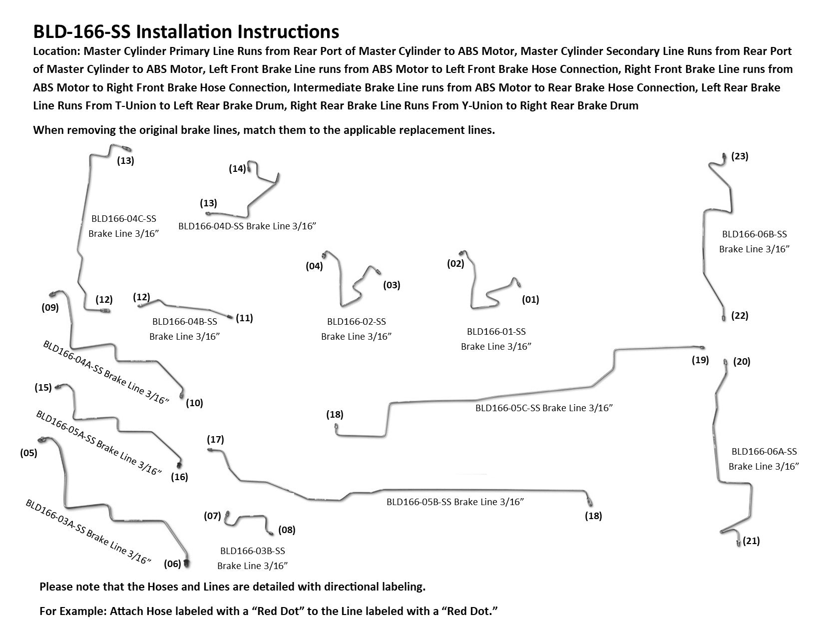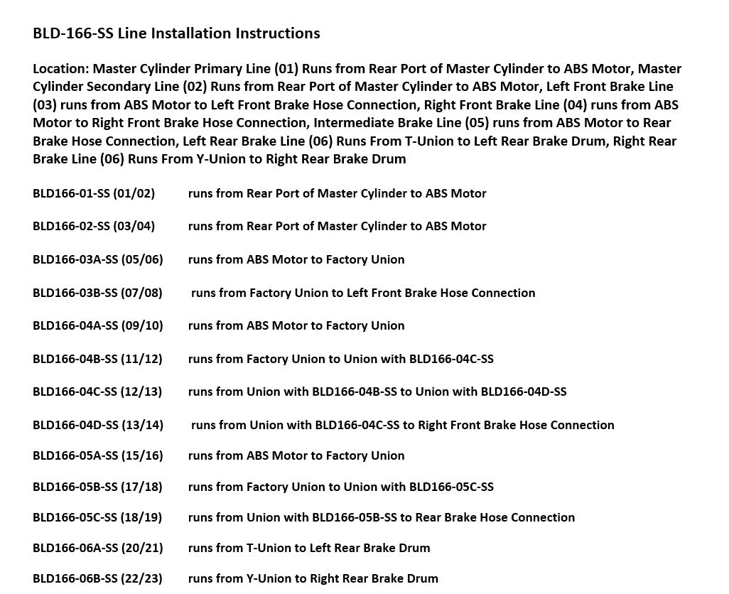 Please Note: Before installing your brake lines, a shipping bend will need to be removed from the lines labeled BLD166-05A-SS and BLD166-05B-SS. See the video below on how to remove the shipping bend