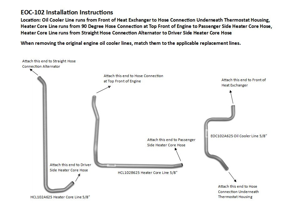 1 Oil Cooler Line 5/8", 1 Heater Core Line 5/8", 1 Heater Core Line 5/8", Does NOT include Oil Cooler Line from Rear of Heat Exchanger to 90-degree Hose Connection Beneath Alternator