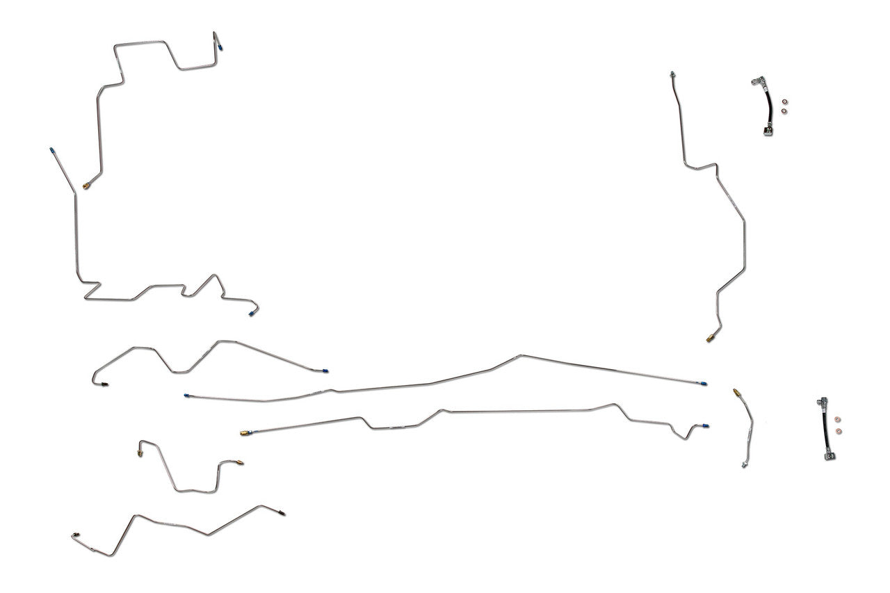 1 Master Cylinder Primary Line 3/16", 1 Master Cylinder Secondary Line 3/16", 1 Right Front Brake Line 3/16" (in 2 easy to install sections), 1 Rear Brake Line 3/16" (in 3 easy to install sections), 1 Rear Axle Crossover Line 3/16" (2 sections), 1 Left Rear Wheel Brake Hose, 1 Right Rear Wheel Brake Hose