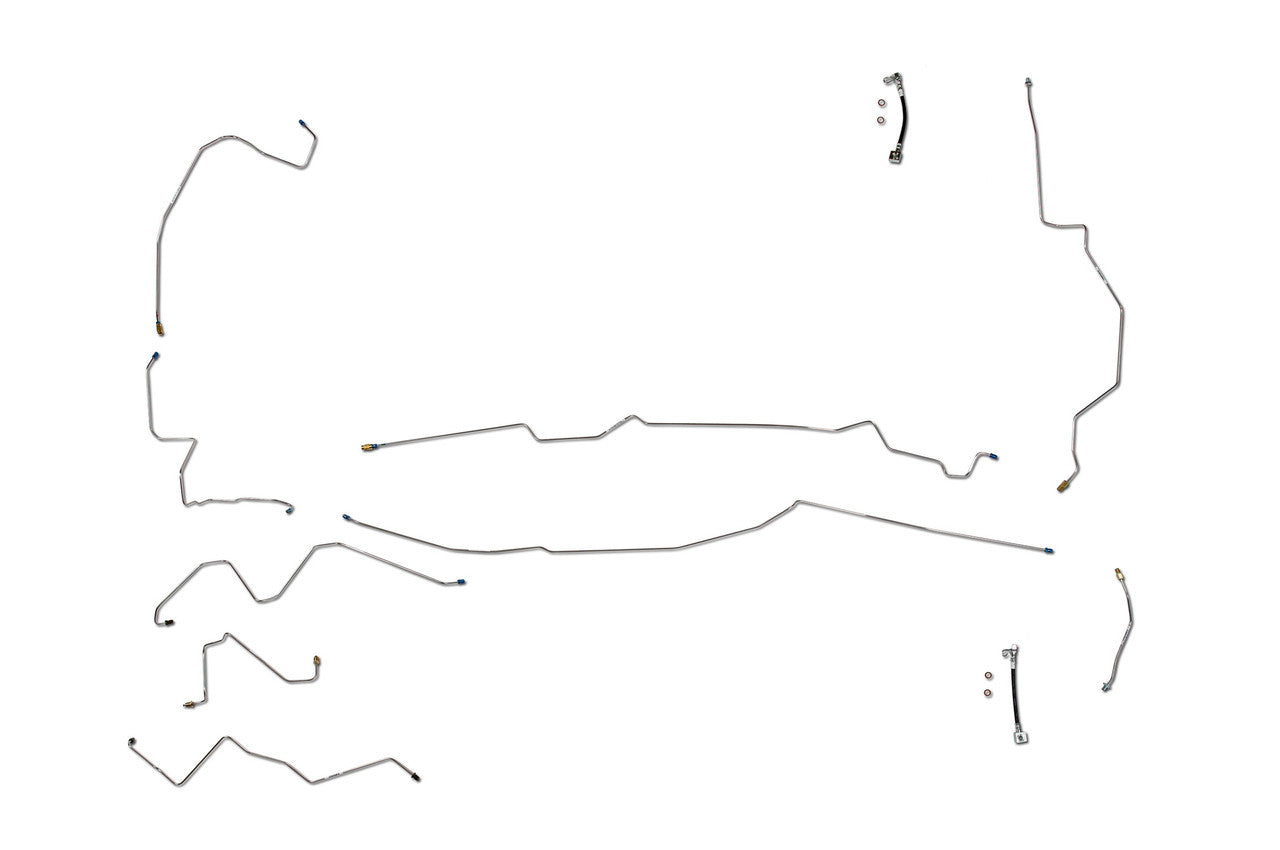 1 Master Cylinder Primary Line 3/16", 1 Master Cylinder Secondary Line 3/16", 1 Right Front Brake Line 3/16" (in 2 easy to install sections), 1 Rear Brake Line 3/16" (in 3 easy to install sections), 1 Rear Axle Crossover Line 3/16" (2 sections), 1 Left Rear Brake Hose, 1 Right Rear Brake Hose