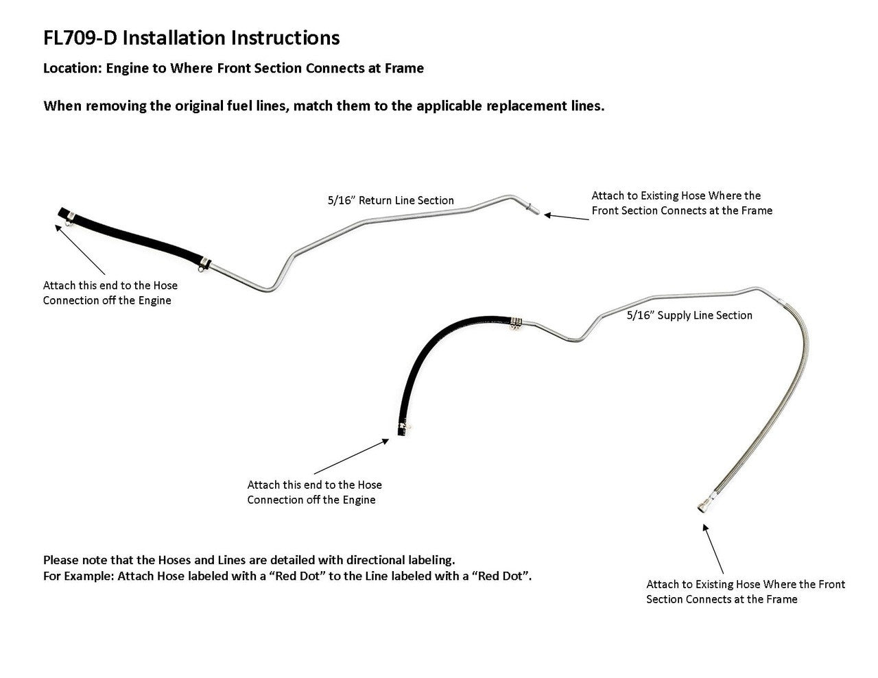 1 supply lines 5/16" , 1 return line 5/16", 2 flex hoses 5/16", hose to engine connection