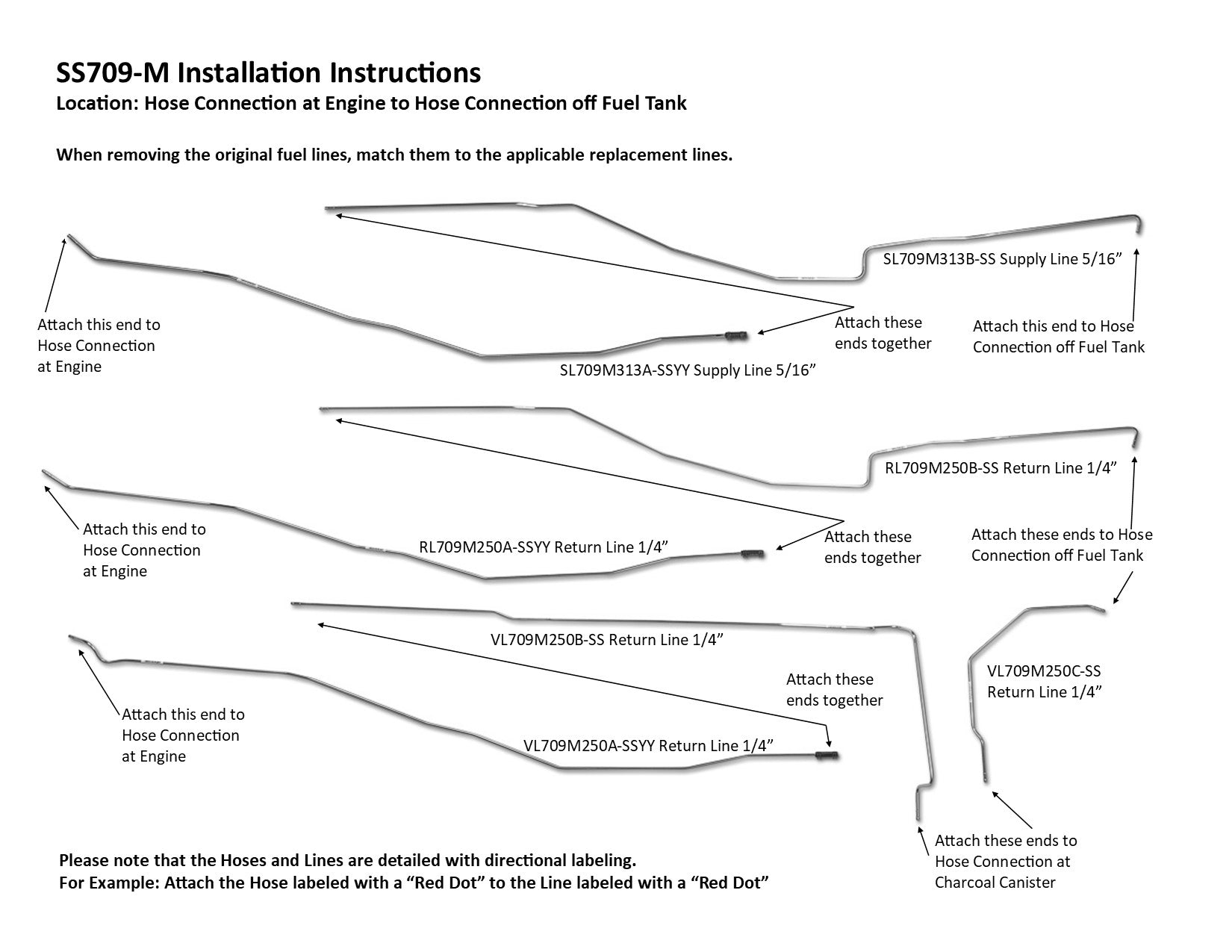 Please Note: Before installing your fuel lines, a shipping bend will need to be removed from the line labeled VL709M250B-SS. See the video below on how to remove the shipping bend