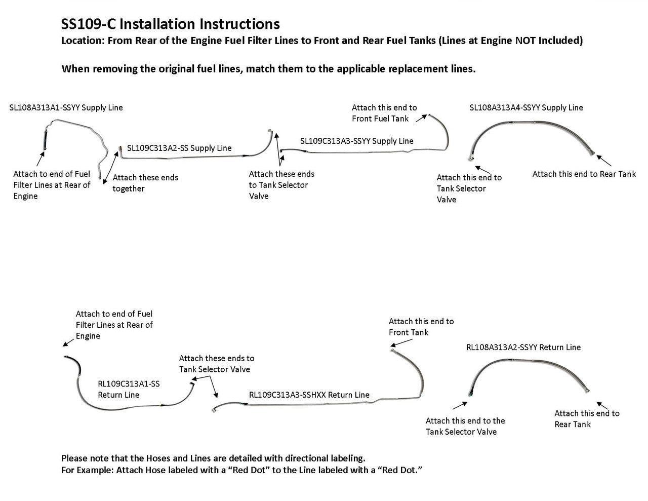 From Rear of the Engine Fuel Filter Lines to Front and Rear Fuel Tanks (Lines at Engine NOT Included)