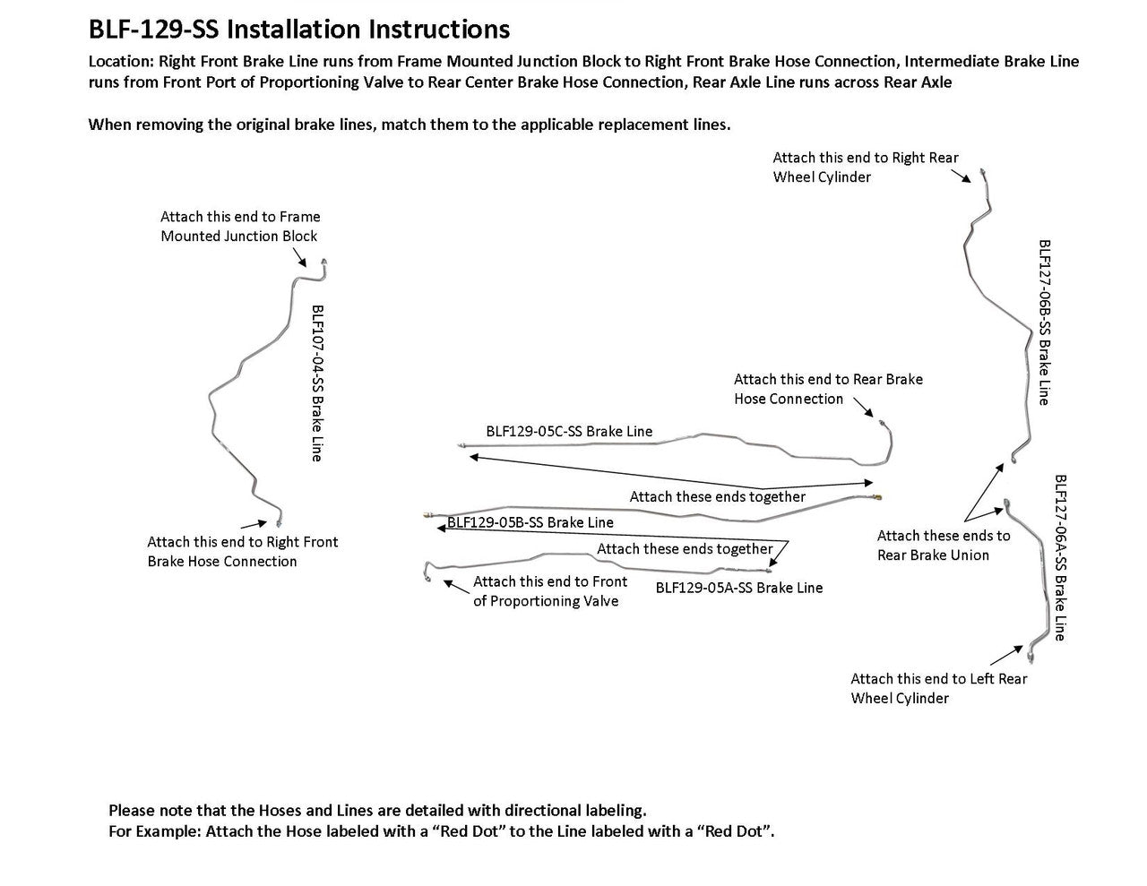 Please Note: Before installing your brake line, a shipping bend will need to be removed from the lines labeled BLF129-05B-SS and BLF129-05C-SS . See the video below on how to remove the shipping bend