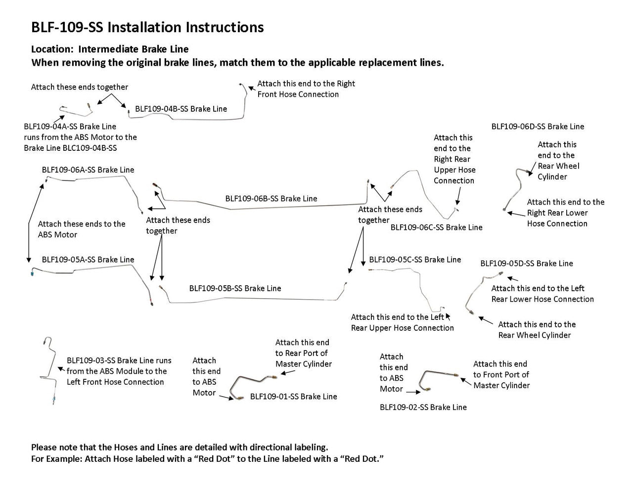 Please Note: Before installing your brake line, a shipping bend will need to be removed from the lines labeled BLF109-05B-SS and BLF109-06B-SS. See the video below on how to remove the shipping bend
