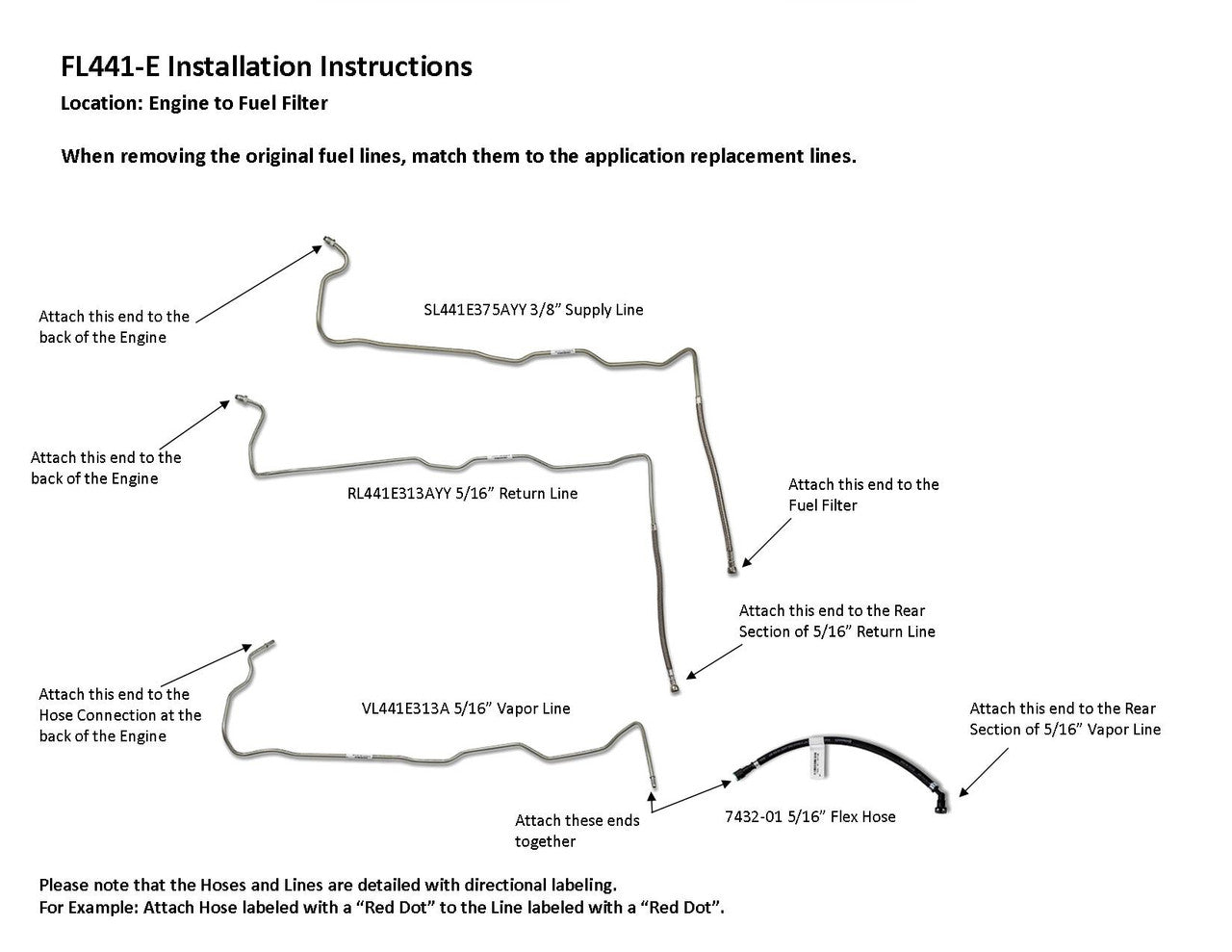 1 supply line 3/8", 1 return line 5/16", 1 vapor line 5/16", hoses to engine connection