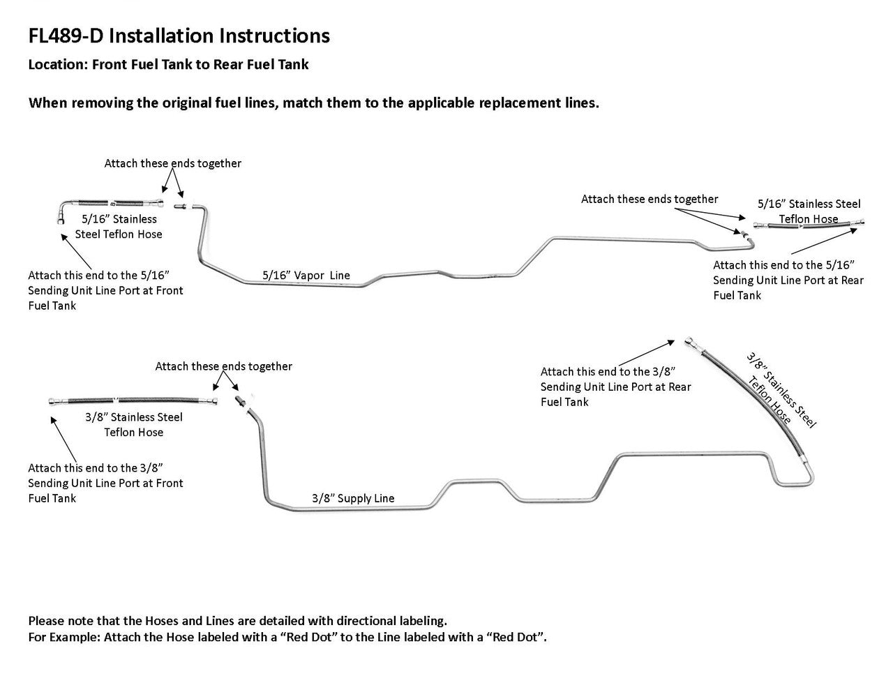 GMC Sierra Auxiliary Fuel Line Set 2007 Reg Cab & Chassis 137" WB 8.1L FL489-D3K
