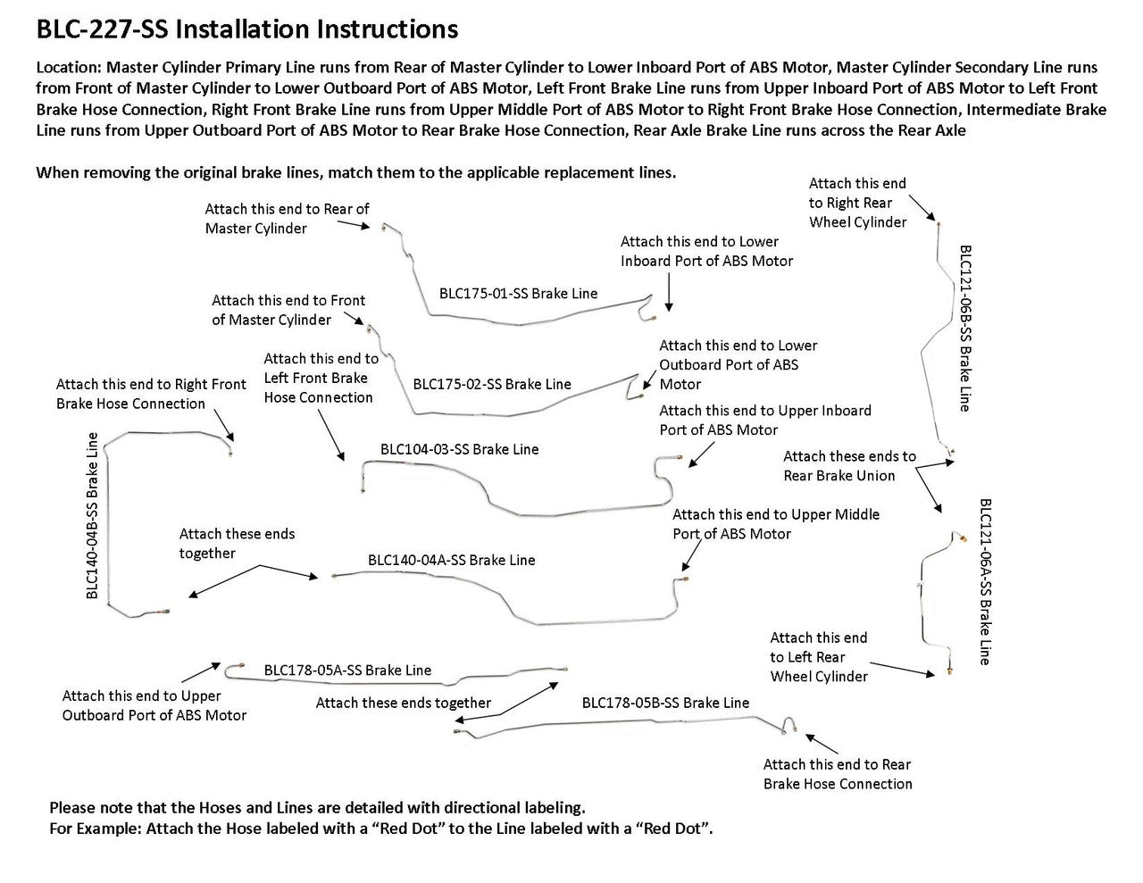 Please Note: Before installing your brake line, a shipping bend will need to be removed from the lines labeled BLC175-01-SS, BLC175-02-SS, BLC104-03-SS, BLC140-04A-SS, BLC140-04B-SS, BLC178-05A-SS, and BLC178-05B-SS. See the video below on how to remove the shipping bend