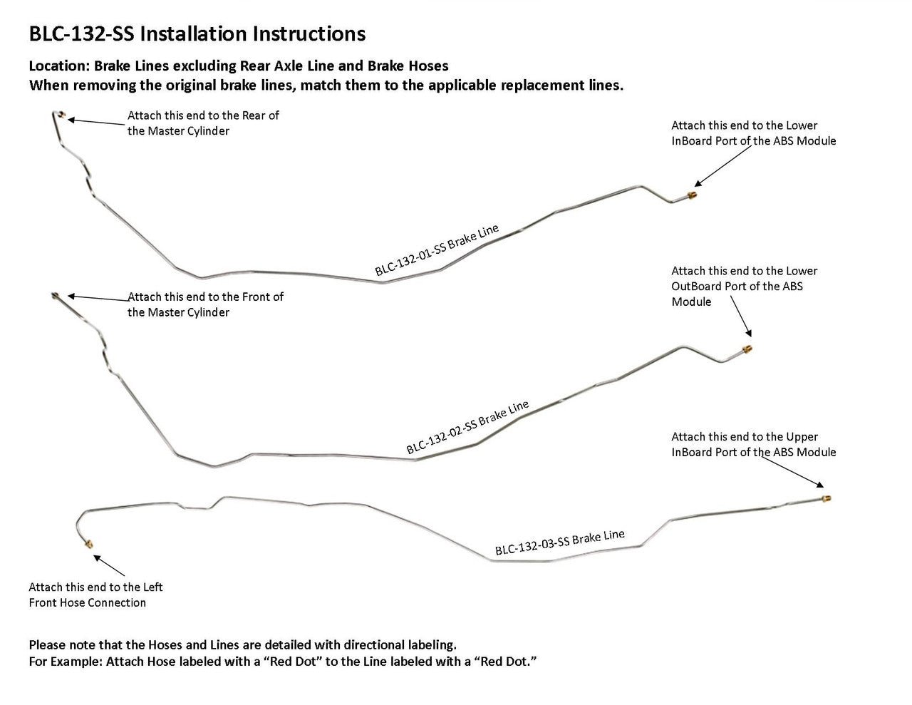 Please Note: Before installing your brake line, shipping bends will need to be removed from the lines labeled BLC132-01-SS, BLC132-02-SS and BLC132-04A-SS. See the video below on how to remove the shipping bend