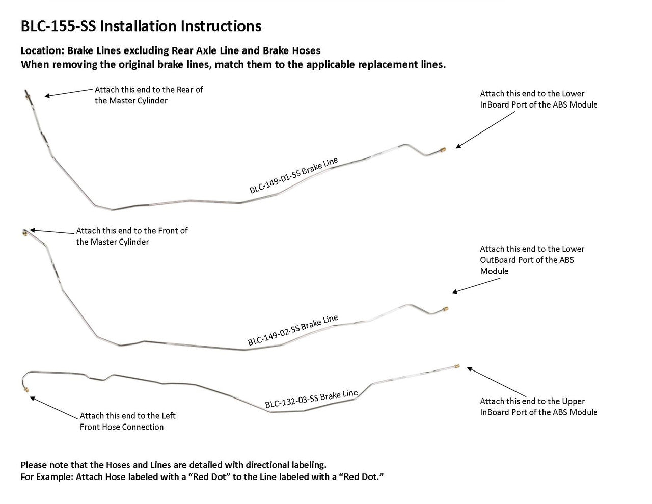 Please Note: Before installing your brake line, shipping bends will need to be removed from the lines labeled BLC149-01-SS, BLC149-02-SS, BLC132-03-SS, BLC132-04A-SS, BLC155-05A-SS and BLC155-05B-SS. See the video below on how to remove the shipping bend
