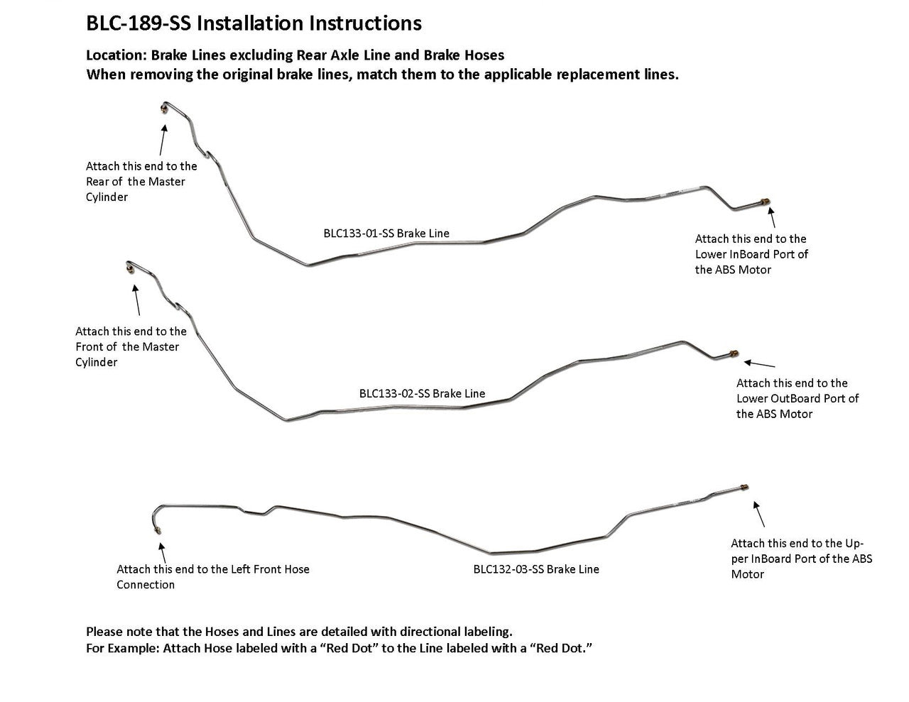 Please Note: Before installing your brake line, shipping bends will need to be removed from the lines labeled BLC133-01-SS, BLC133-02-SS, BLC132-03-SS and BLC132-04A-SS. See the video below on how to remove the shipping bend