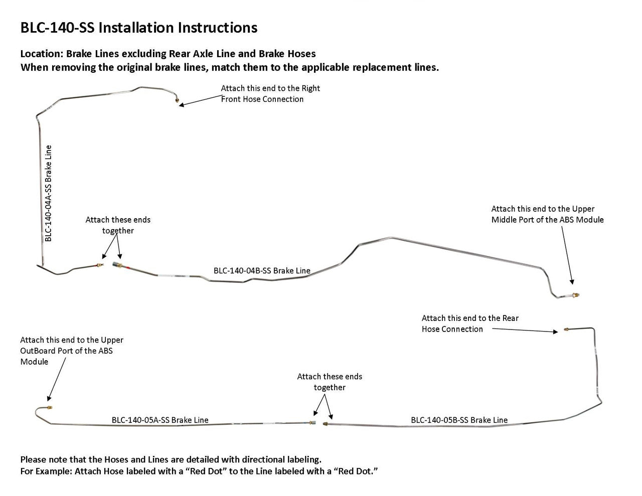 Please Note: Before installing your brake line, shipping bends will need to be removed from the lines labeled BLC106-01-SS, BLC106-02-SS, BLC104-03-SS, BLC140-04A-SS and BLC140-05A-SS. See the video below on how to remove the shipping bend