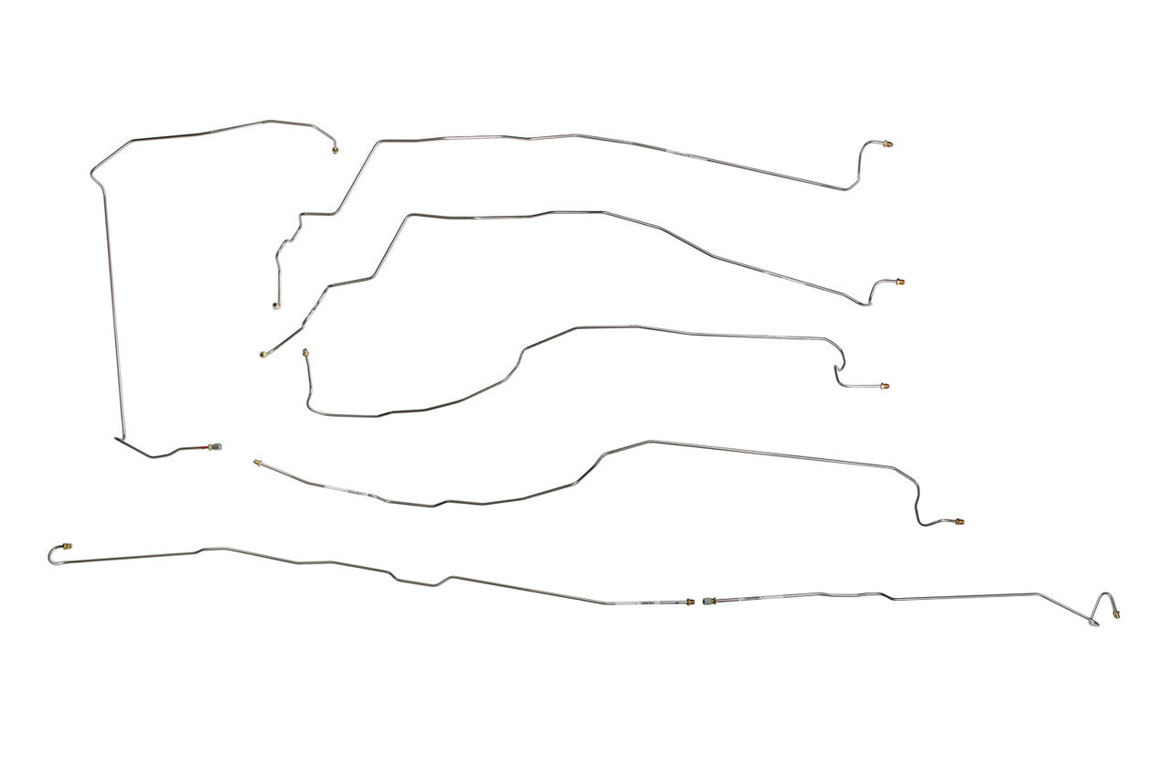 1 Master Cylinder Primary Brake Line ¼”, 1 Master Cylinder Secondary Brake Line ¼”, 1 Left Front Brake Line ¼”, 1 Right Front Brake Line ¼” (in 2 easy to install sections), 1 Intermediate Brake Line ¼” (in 2 easy to install sections), Does NOT include Rear Axle Crossover Line or Brake Hoses