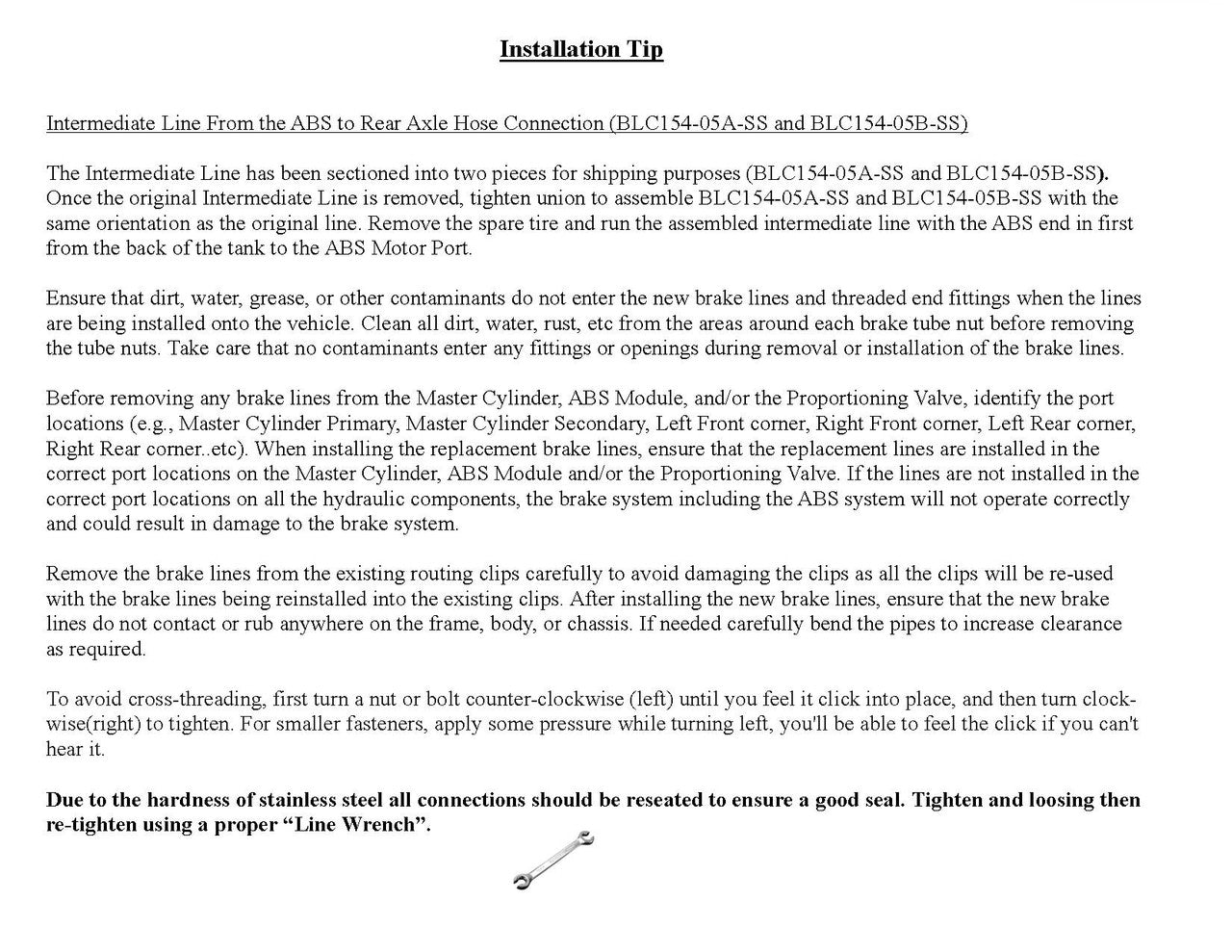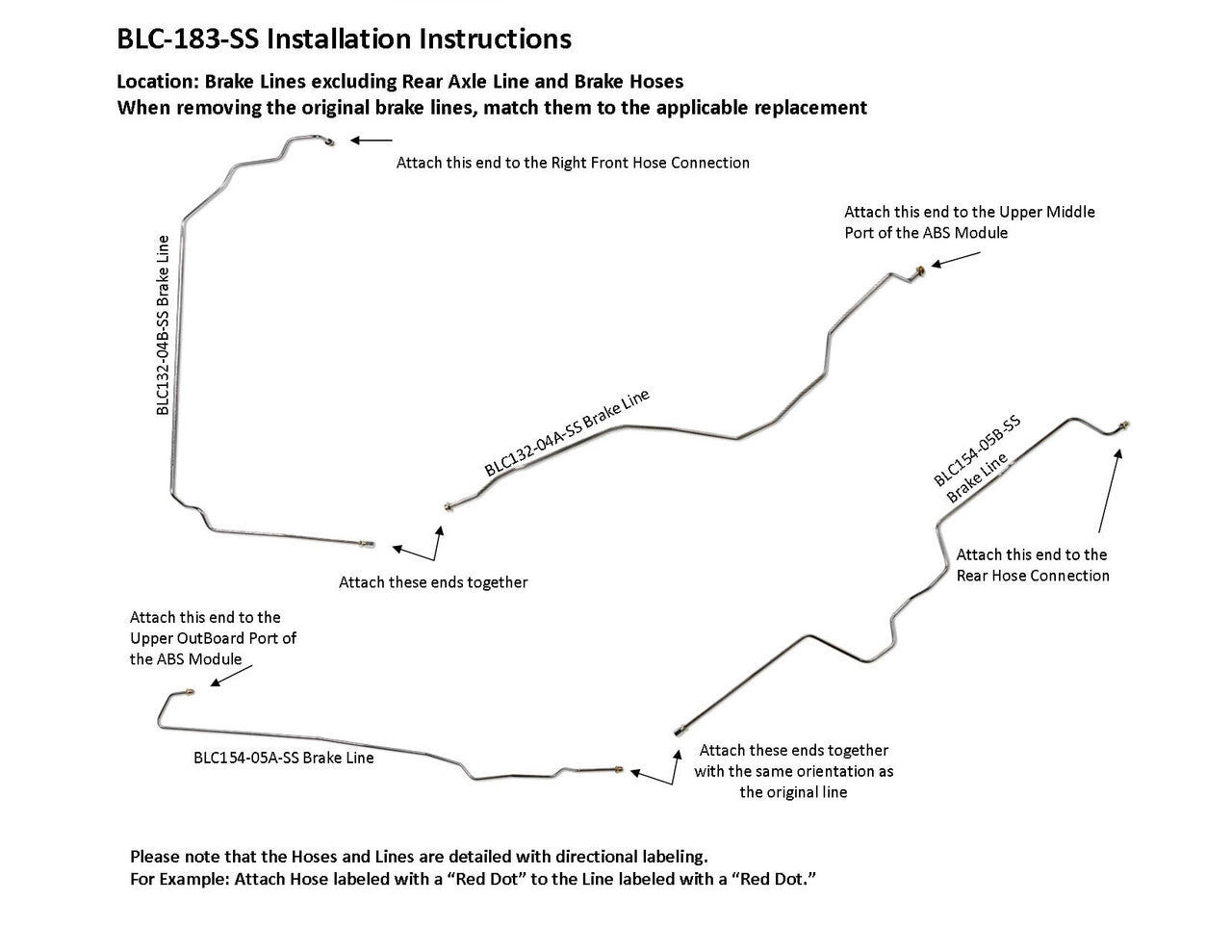 Please Note: Before installing your brake line, shipping bends will need to be removed from the lines labeled BLC133-01-SS, BLC133-02-SS and BLC132-03-SS, BLC132-04A-SS and BLC154-05A-SS. See the video below on how to remove the shipping bend.