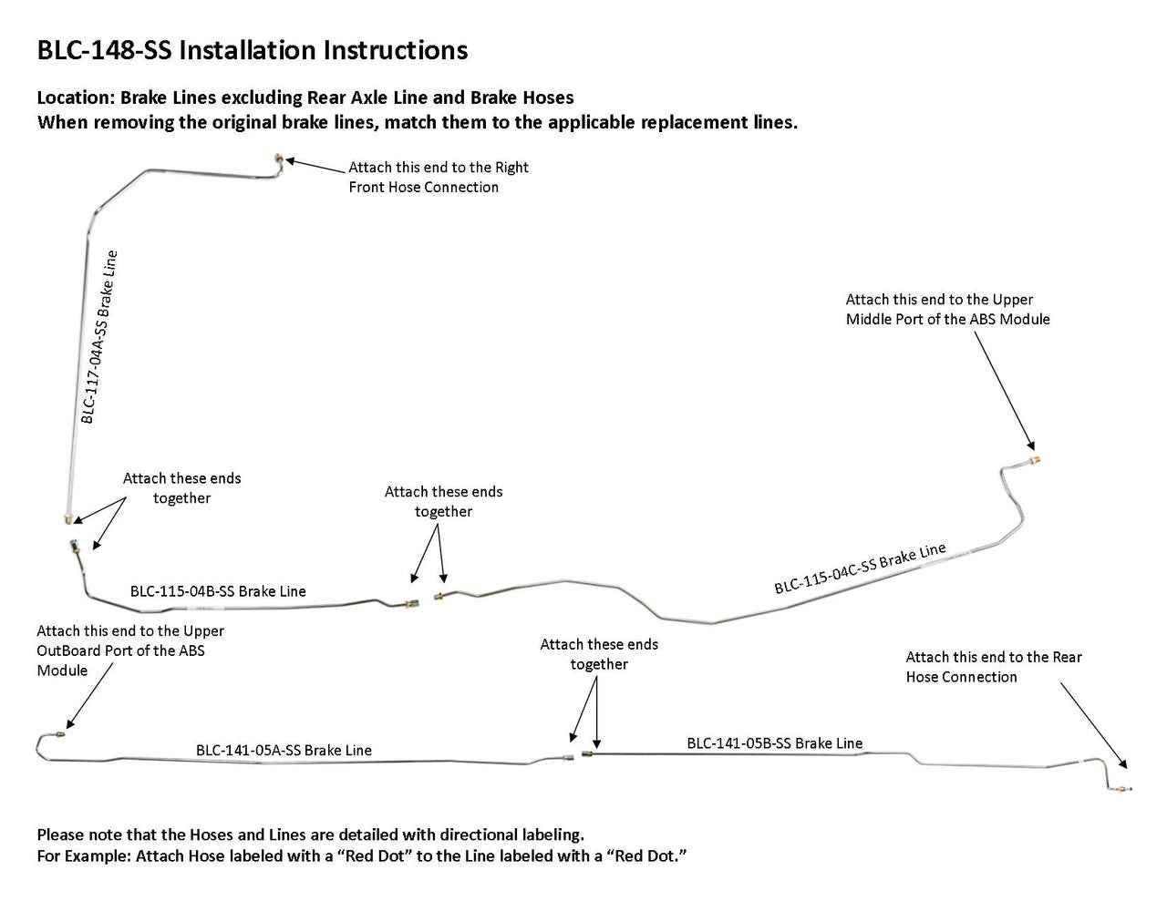 Please Note: Before installing your brake line, shipping bends will need to be removed from the lines labeled BLC106-01-SS, BLC106-02-SS, BLC106-03-SS and BLC141-05A-SS. See the video below on how to remove the shipping bend