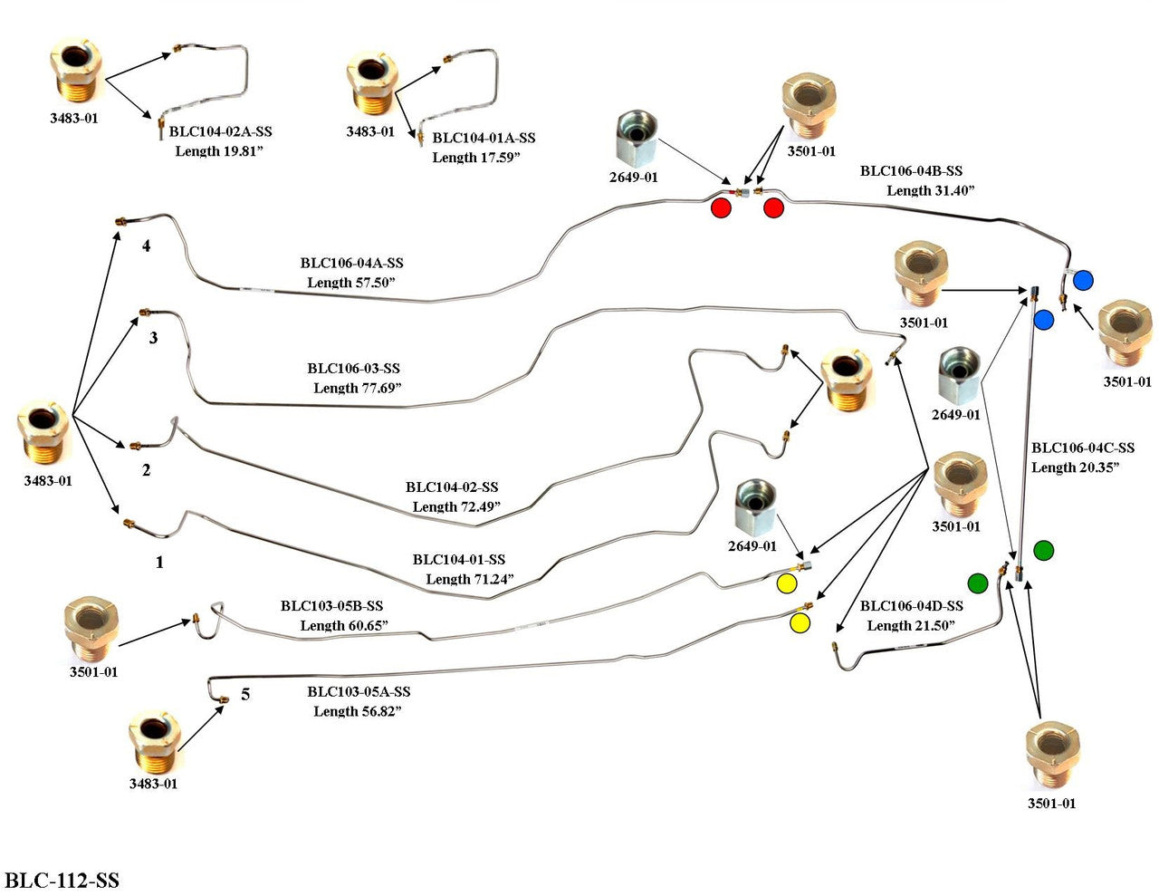 Please Note: Before installing your brake line, a shipping bend will need to be removed from the lines labeled BLC104-01-SS, BLC104-02-SS, BLC106-03-SS, BLC106-04A-SS, BLC103-05A-SS, and BLC103-05B-SS. See the video below on how to remove the shipping bend