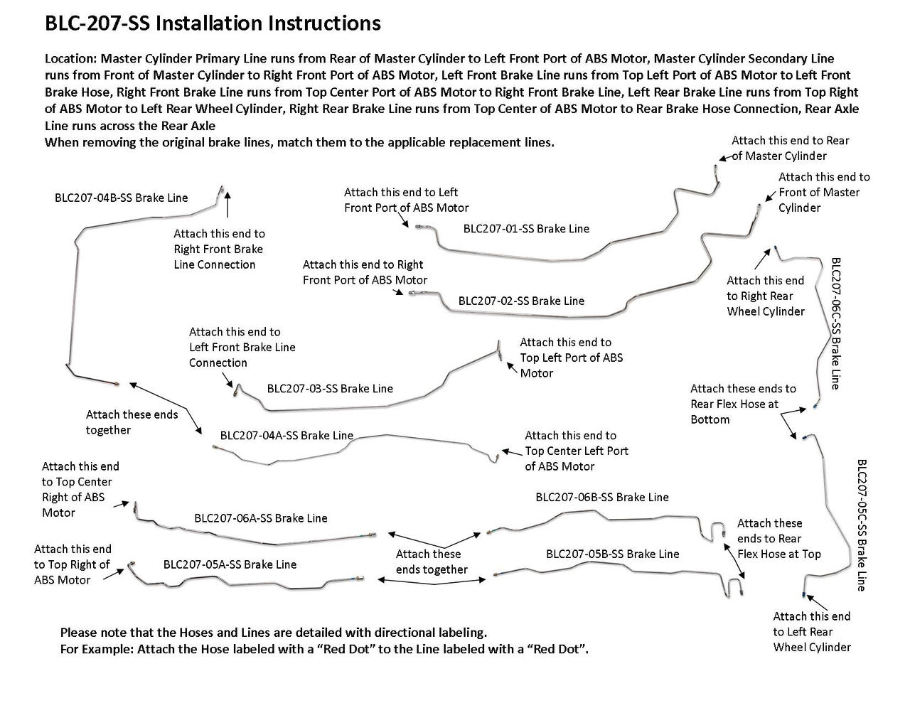 Please Note: Before installing your brake line, shipping bends will need to be removed from the lines labeled BLC207-01-SS, BLC207-02-SS and BLC207-04A-SS. See the video below on how to remove the shipping bend