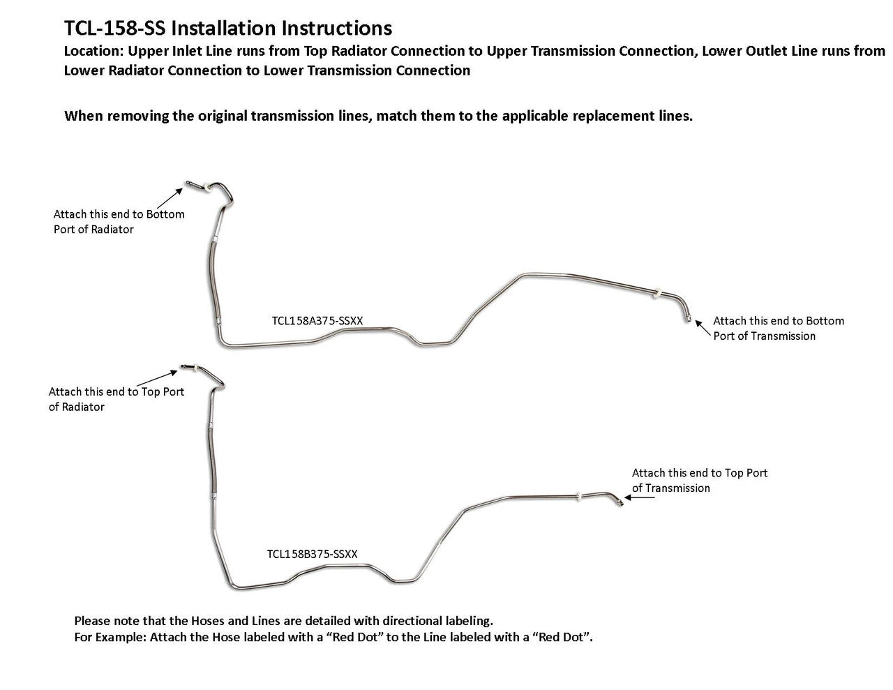 Upper Inlet Line runs from Top Radiator Connection to Upper Transmission Connection, Lower Outlet Line runs from Lower Radiator Connection to Lower Transmission Connection