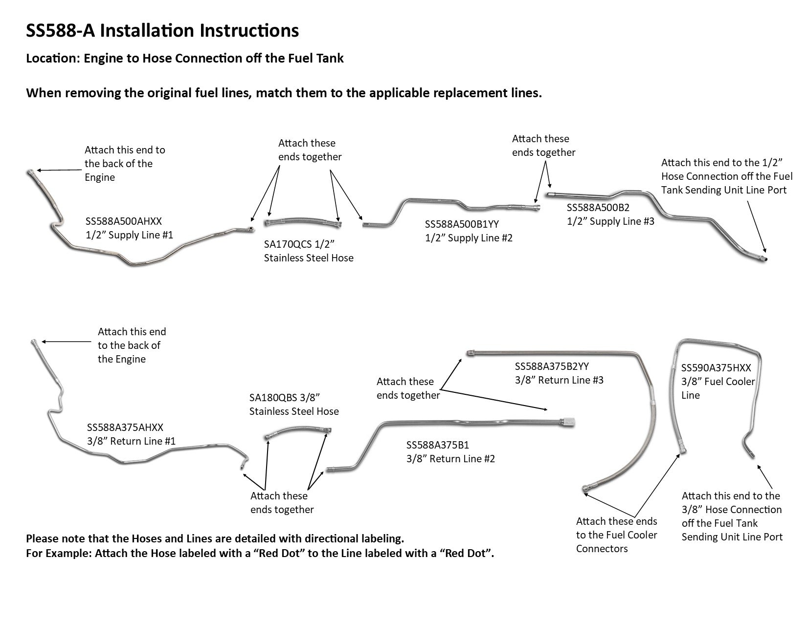 Not Included in Set: Hoses between fuel line and fuel tank 5070-01B and Cooler Connector Lines FL591-A2B or SS591-A2B. These parts are available for purchase separately