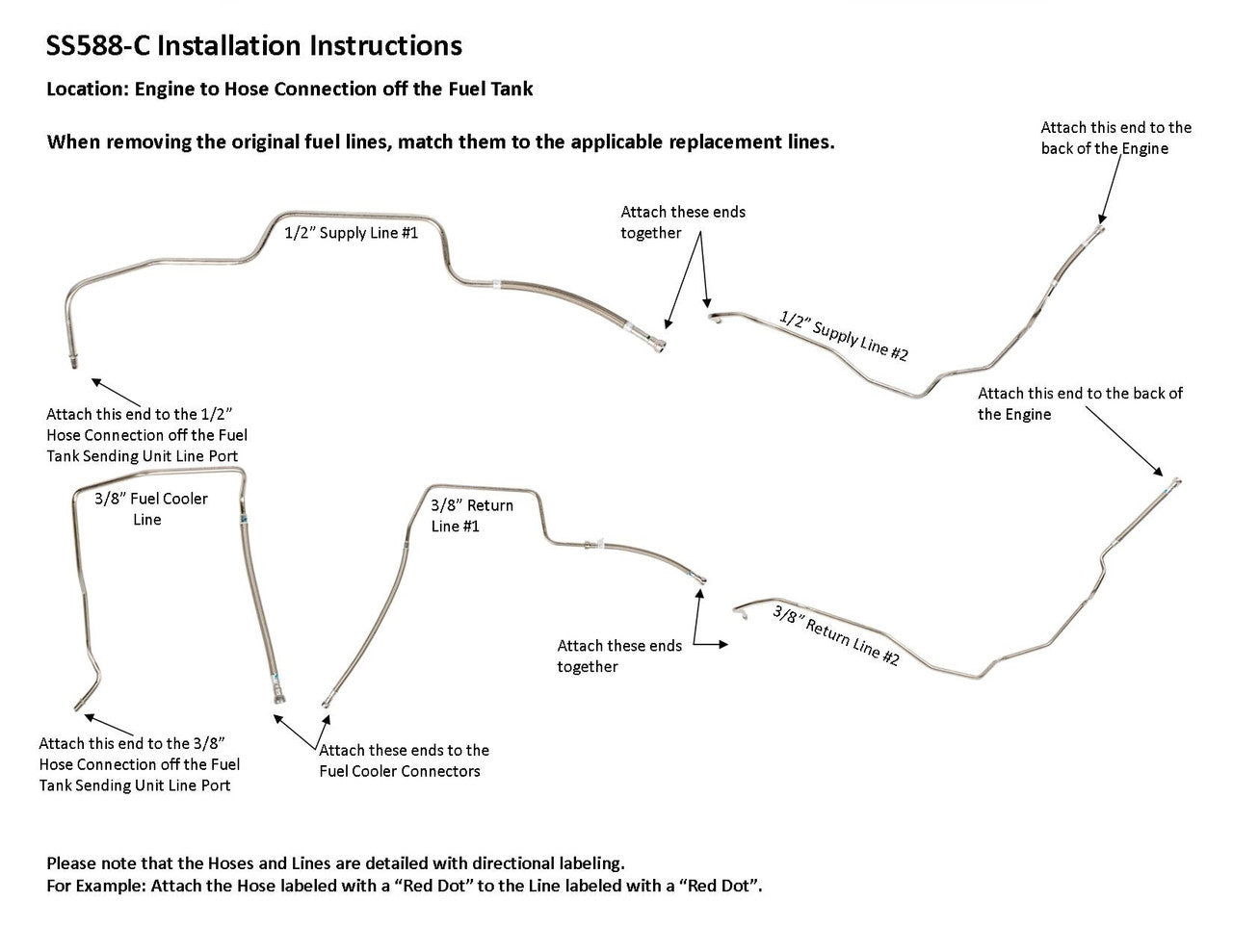 Not Included in Set: Hoses between fuel line and fuel tank 5070-01B and Cooler Connector Lines FL591-A2B or SS591-A2B. These parts are available for purchase separately