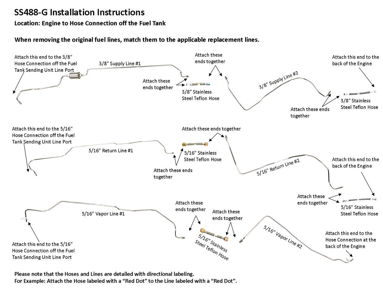 GMC Sierra Fuel Line Set 2003 2500 Exc HD, Ext Cab 6.5ft Bed 6.0L SS488-G8C Stainless Steel