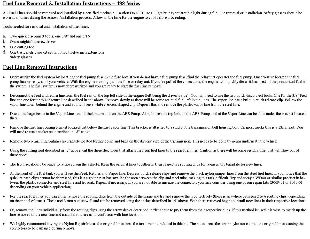 Lines are constructed from Galfan® coated tubing for rust protection with original equipment end forms and fittings and are CNC (Computer Numerically Controlled) bent for an easy precise installation