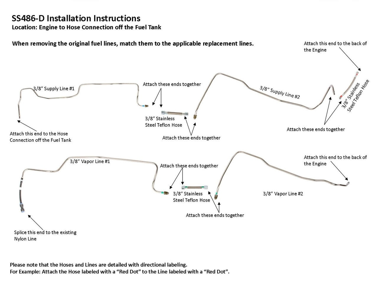 Nylon Lines Between Fuel Lines and Fuel Tank: Nylon lines between the fuel line and the fuel tank are not included. We do not make the nylon lines for this vehicle. However, you can purchase a nylon repair kit, 3070-01, which will attach to your existing nylon line providing a new connector for the supply and return lines to connect to.