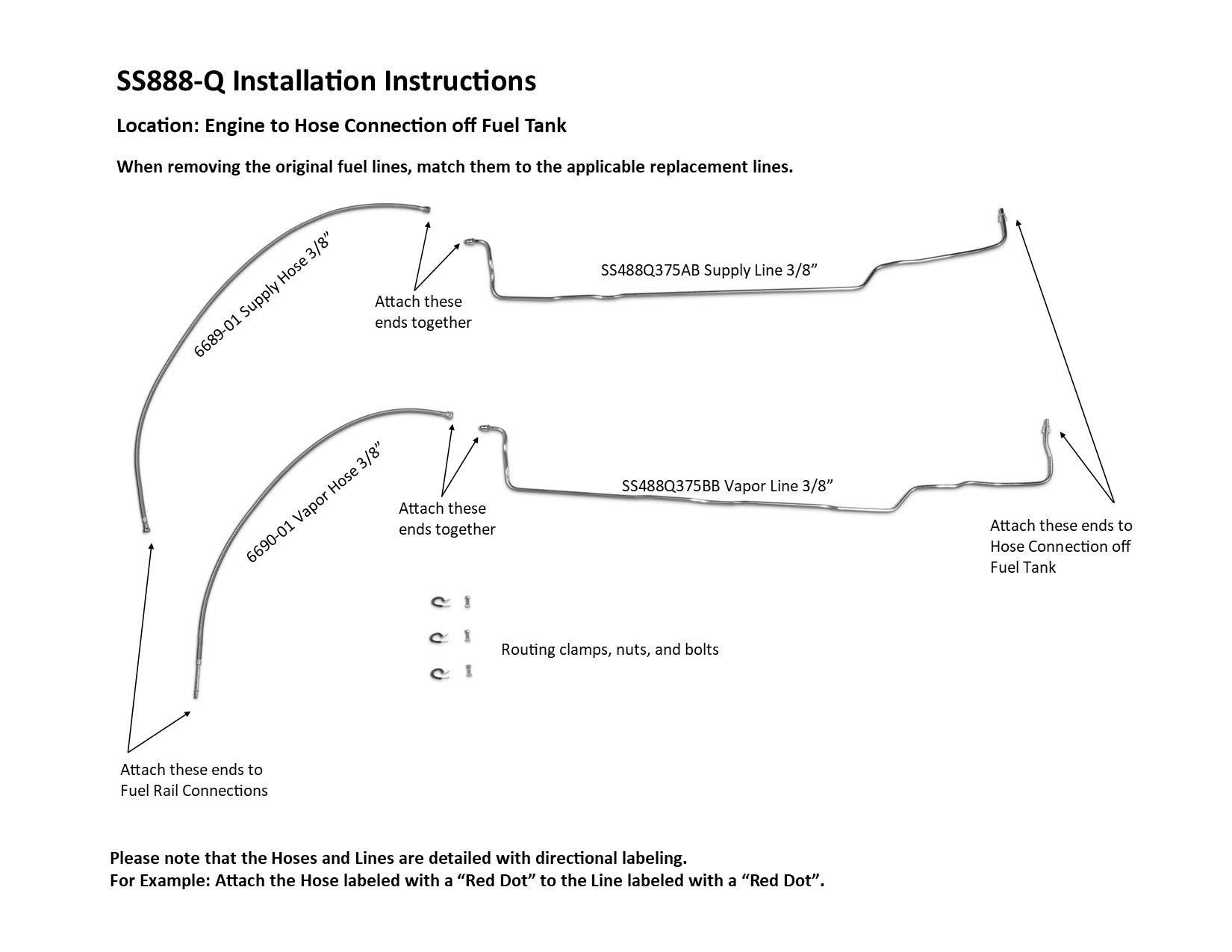 Please Note: Original equipment Silverado/ Sierra front fuel line sections can be difficult to install from the engine connections down to the frame rail. These LinesToGo 888 Series come with front flexible stainless steel braided Teflon hoses, making a difficult and time consuming job, a whole lot easier and faster. Routing clips and hardware included
