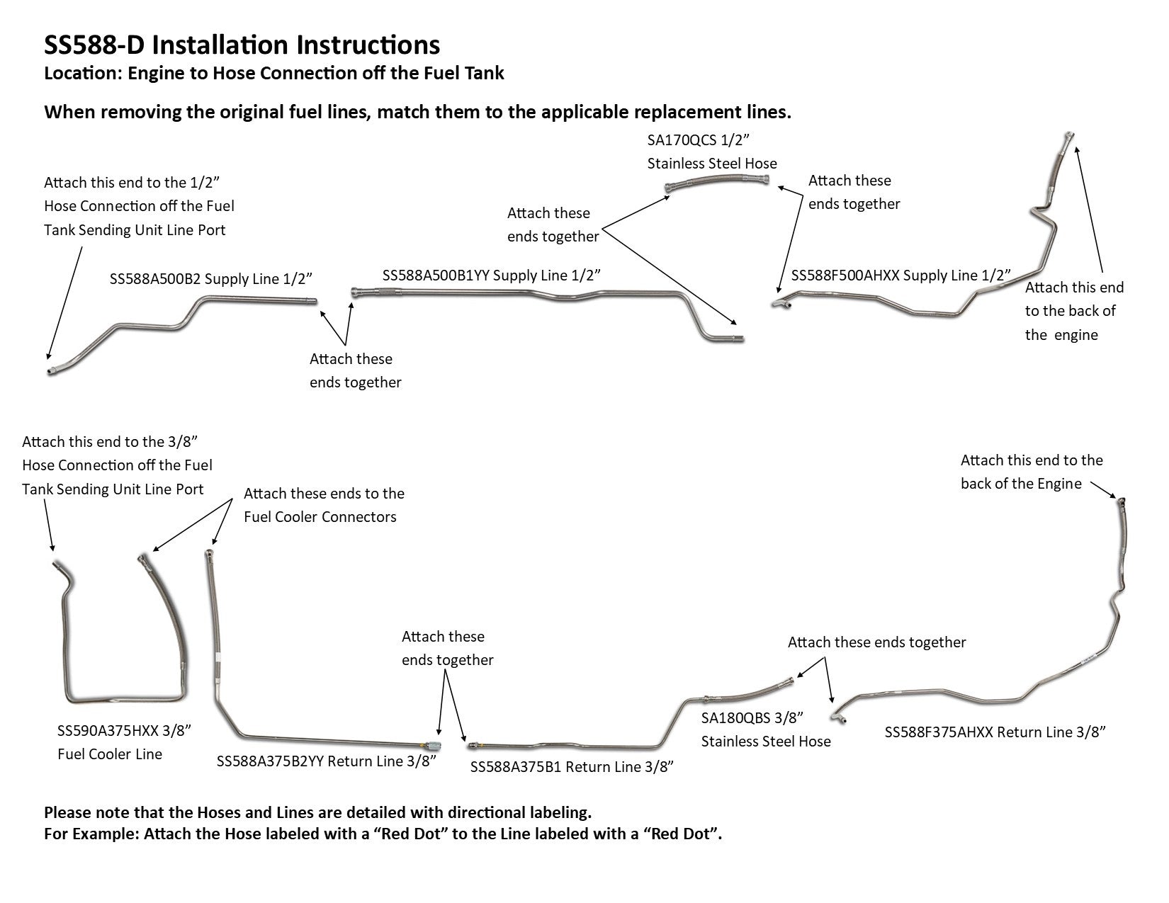 Not Included in Set: Hoses between fuel line and fuel tank 5069-01C and Cooler Connector Lines FL591-A2F or SS591-A2F. These parts are available for purchase separately