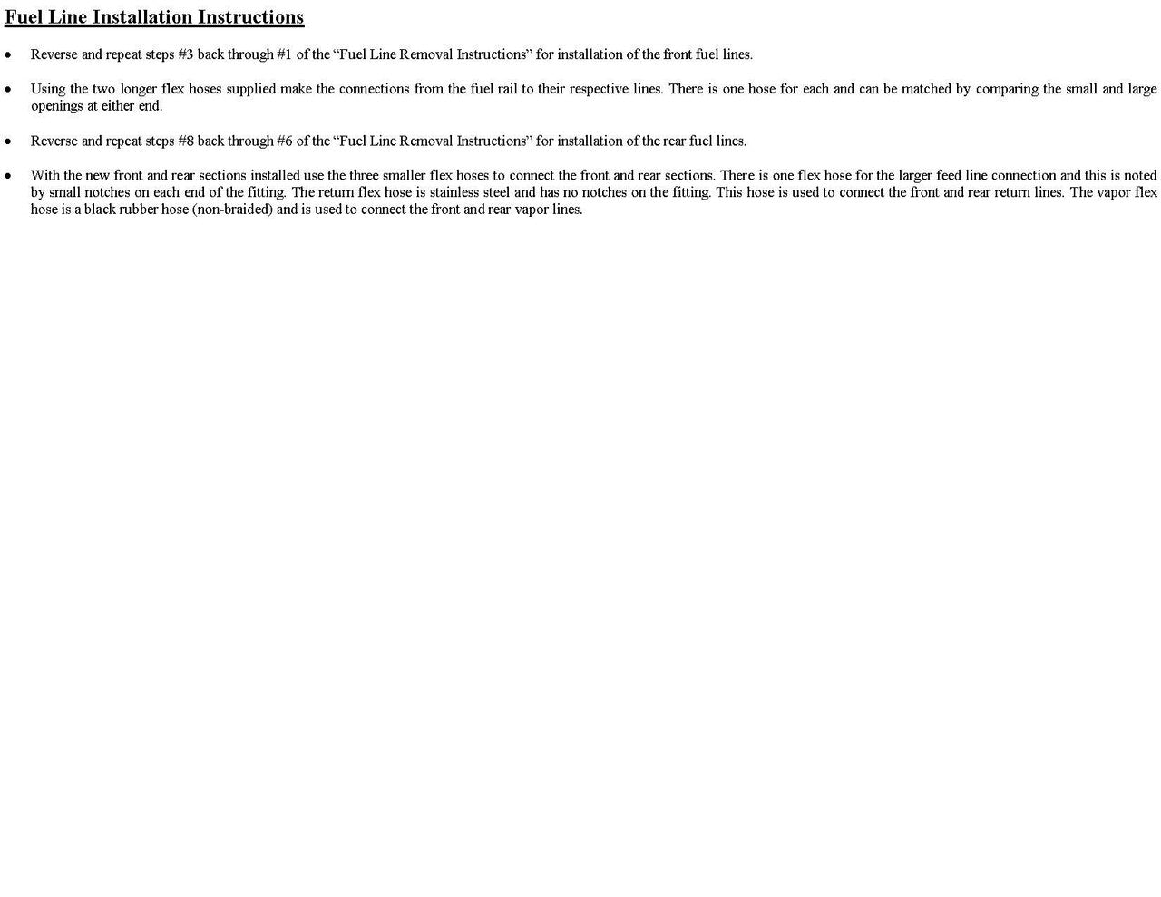 1 supply line 3/8" ( in 2 easy to install sections), 1 vapor line 3/8" ( in 2 easy to install sections), hose to engine connection, hoses to join rear and front section