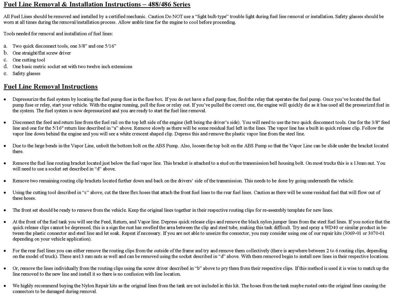 Nylon lines between the fuel line and the fuel tank are not included. However, you can purchase Stainless Steel Lines between fuel lines and fuel tank, 5076-01D