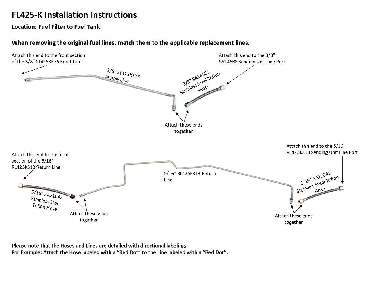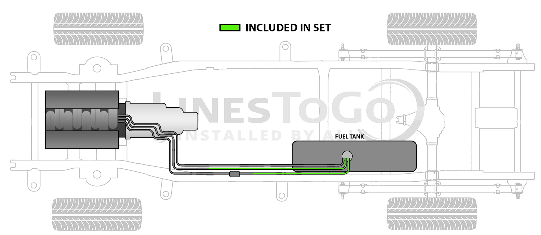 1 Supply Line 3/8", 1 Supply Line 3/8", 1 Return Line 5/16", Hoses to Sending Unit Connection, Hoses to join Front and Rear Sections, 1 Fuel Filter