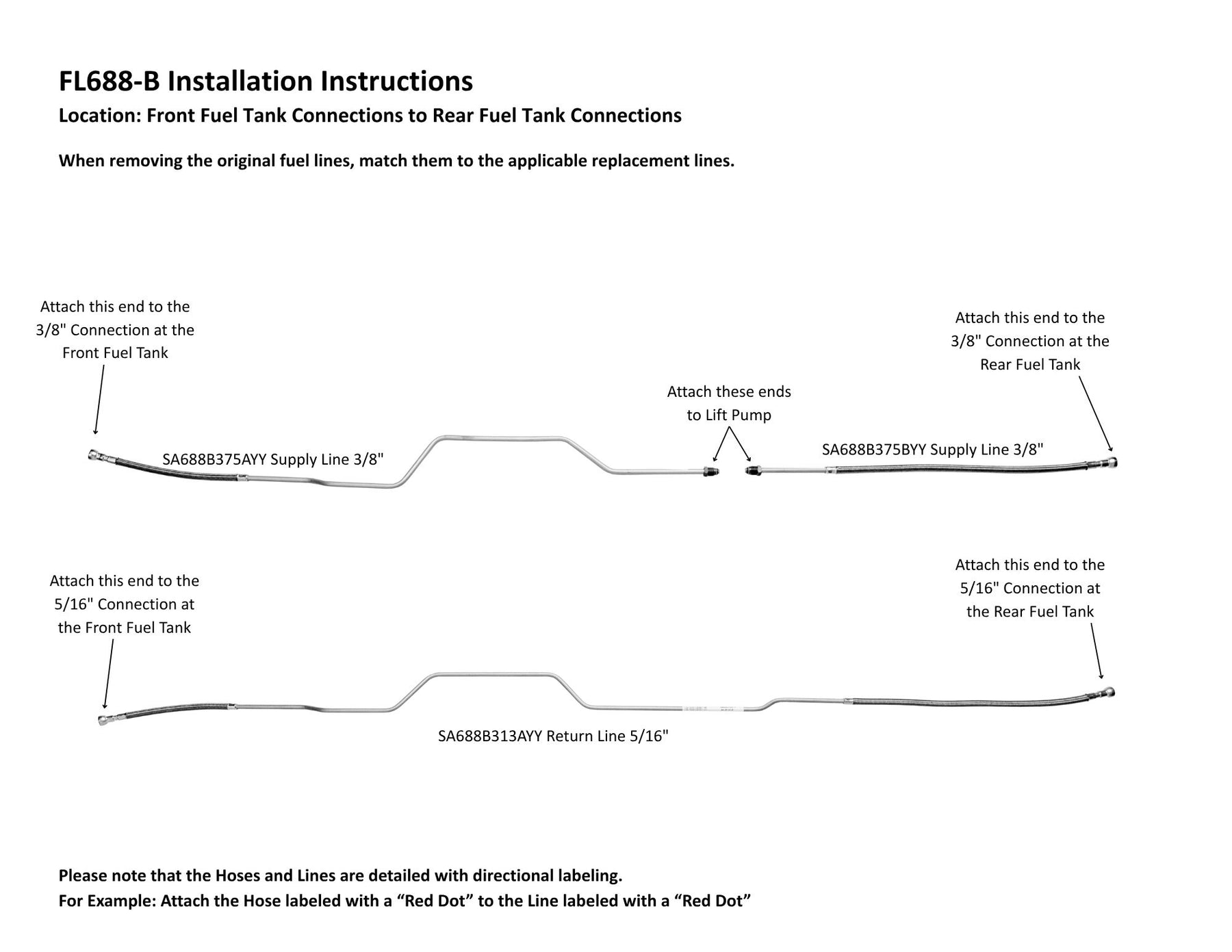 GMC TopKick Auxiliary Fuel Line Set 2004 C4500/5500 w/Auxiliary Tank RPO Code NG6 6.6L Diesel FL688-B2B