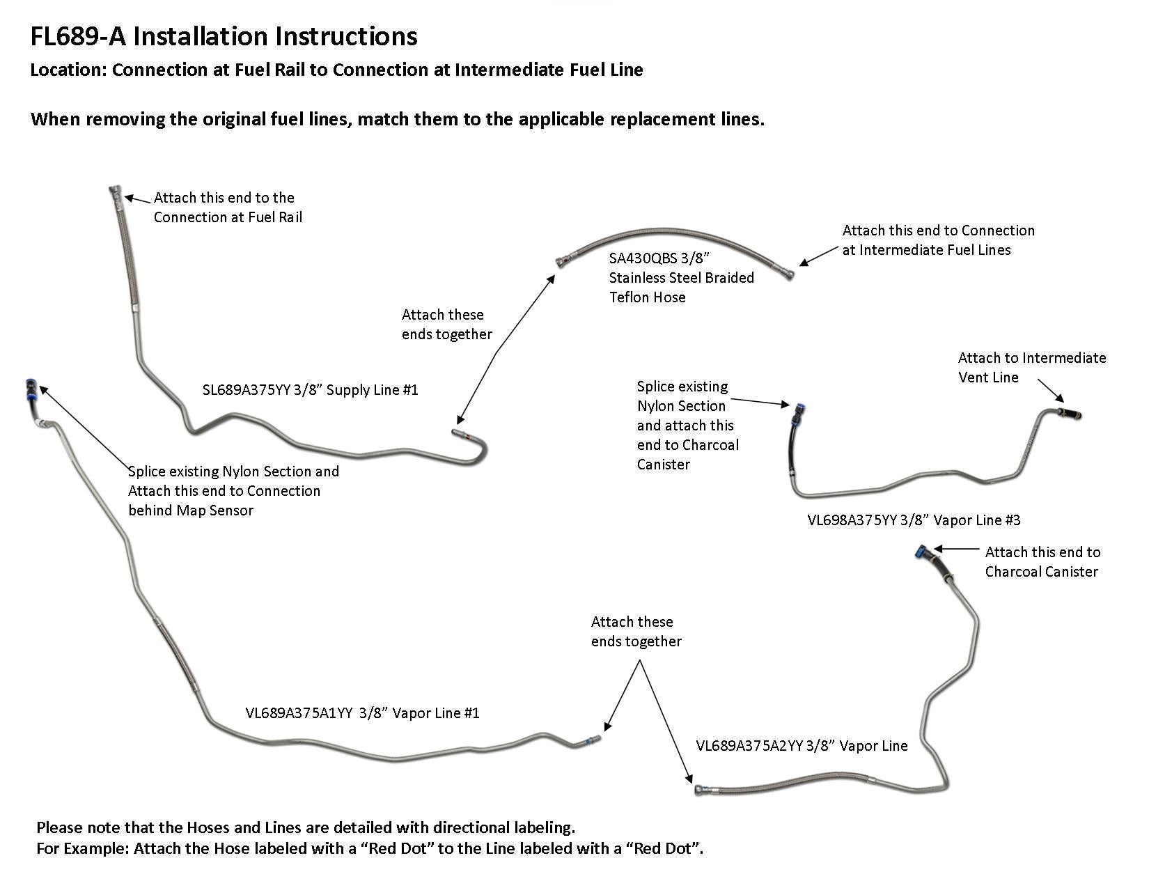 Connection at Fuel Rail to Connection at Intermediate Fuel Lines