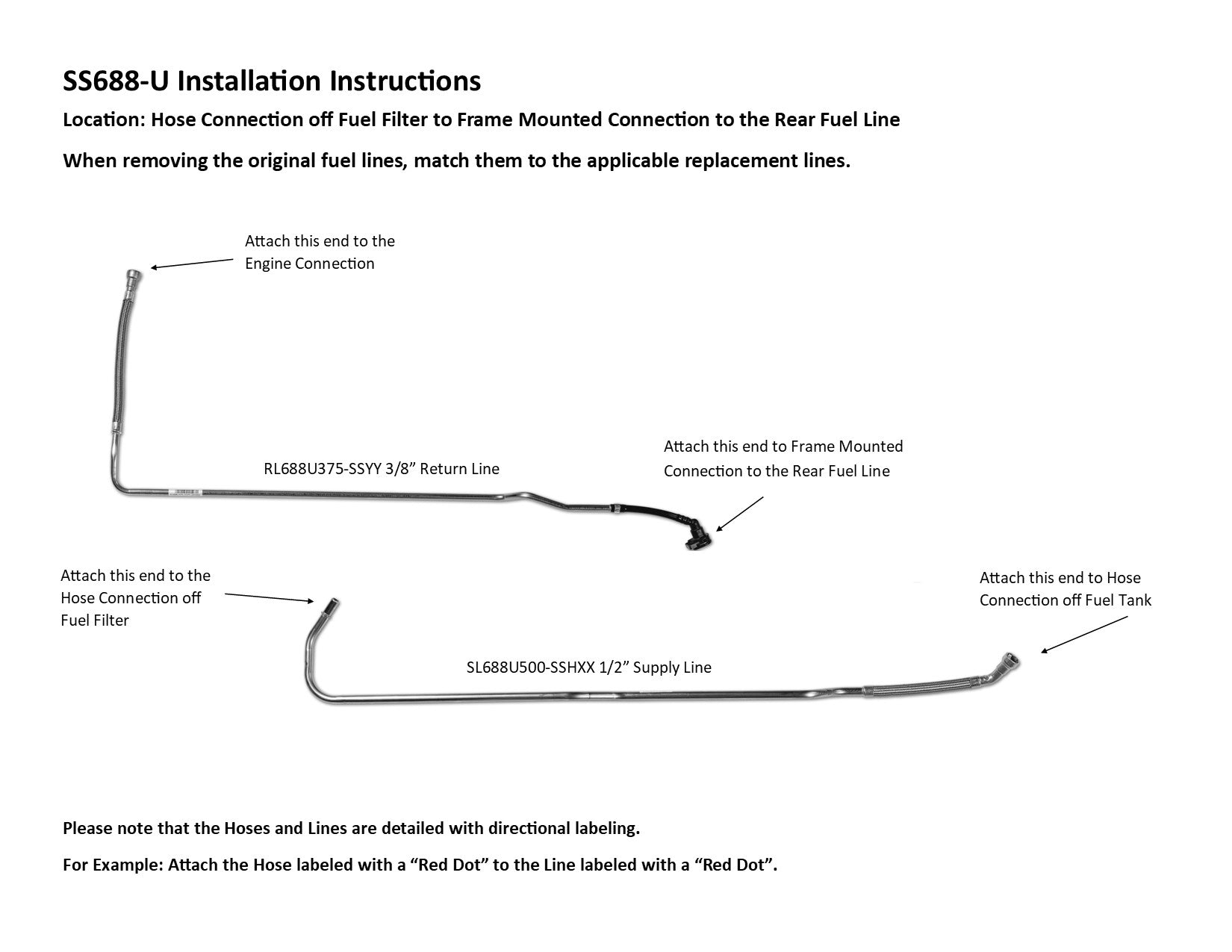 GMC Topkick Intermediate Fuel Line Set 2006 C6500/7500/8500 7.2L SS688-U2C Stainless Steel