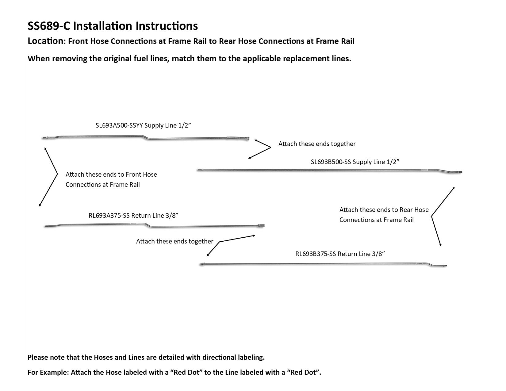 Stainless Steel Intermediate Fuel Line Set for GMC TopKick C4500/C5500 w/169"WB w/Single Rear Mount Tank for 6.6L Duramax Diesel (w/RPO Code LLY) engines.