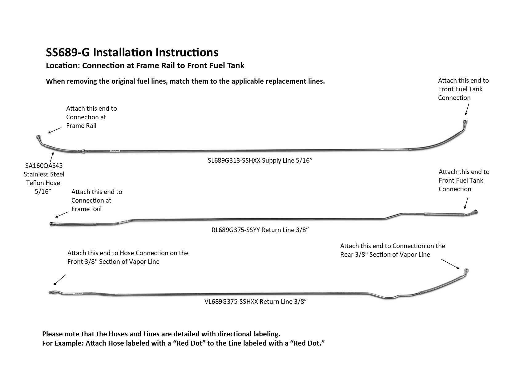 GMC TopKick Intermediate Fuel Line Set 2009 C4500/5500 w/176" WB 8.1L SS689-G2B Stainless Steel
