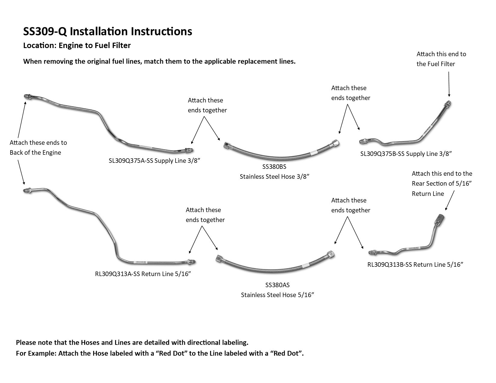 Lines are constructed from Stainless Steel tubing for rust protection with original equipment end forms and fittings and are CNC (Computer Numerically Controlled) bent for an easy precise installation.