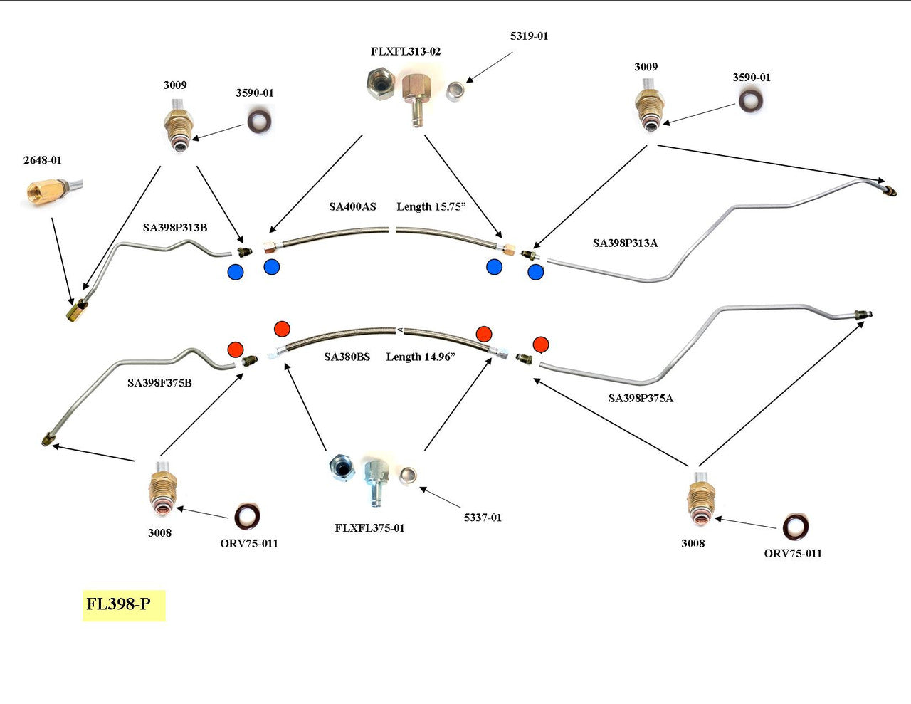 GMC Truck Front Fuel Line Set 1993 K3500 Crew Cab 7.4L FL398-P2B