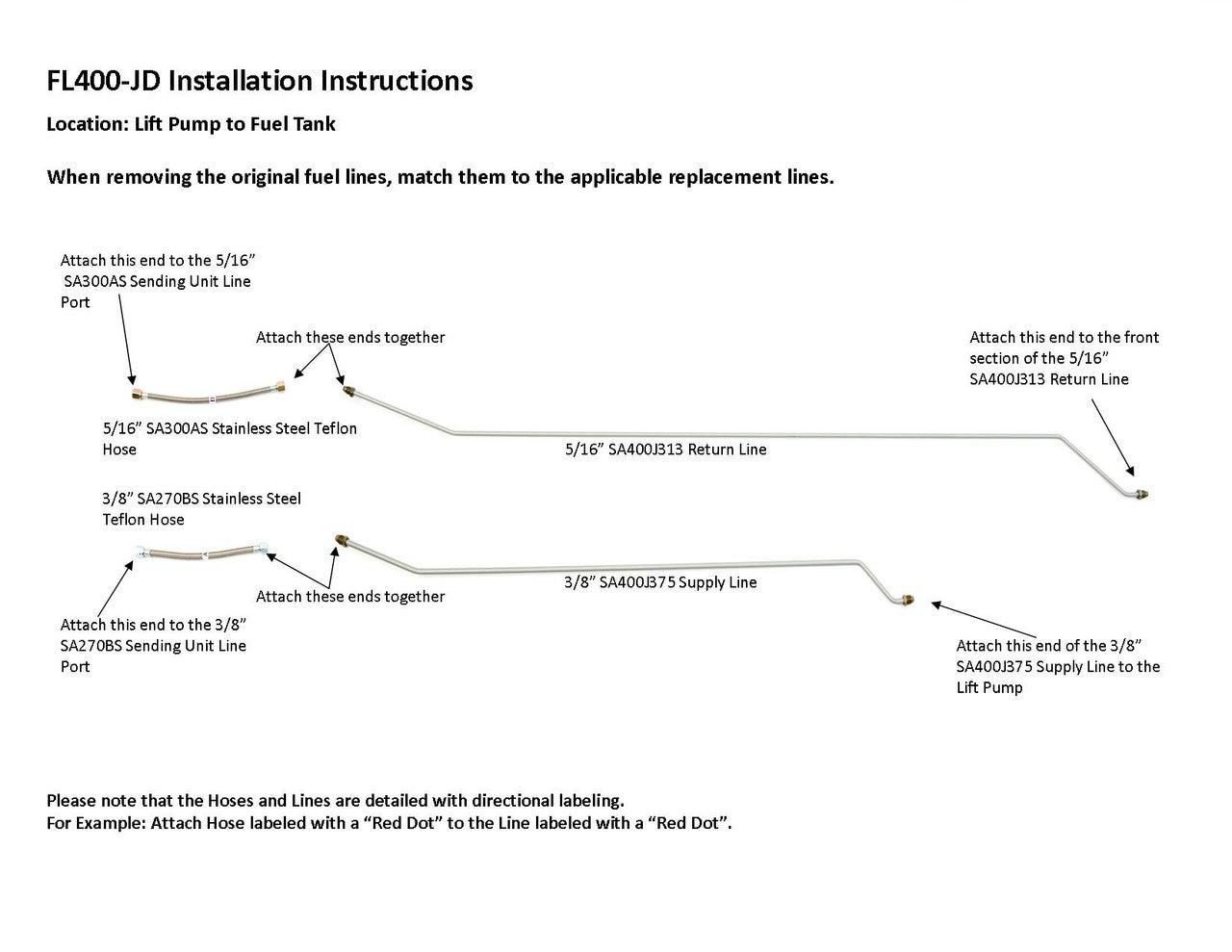 1 supply line 3/8", 1 return line 5/16", hoses to sending unit connection