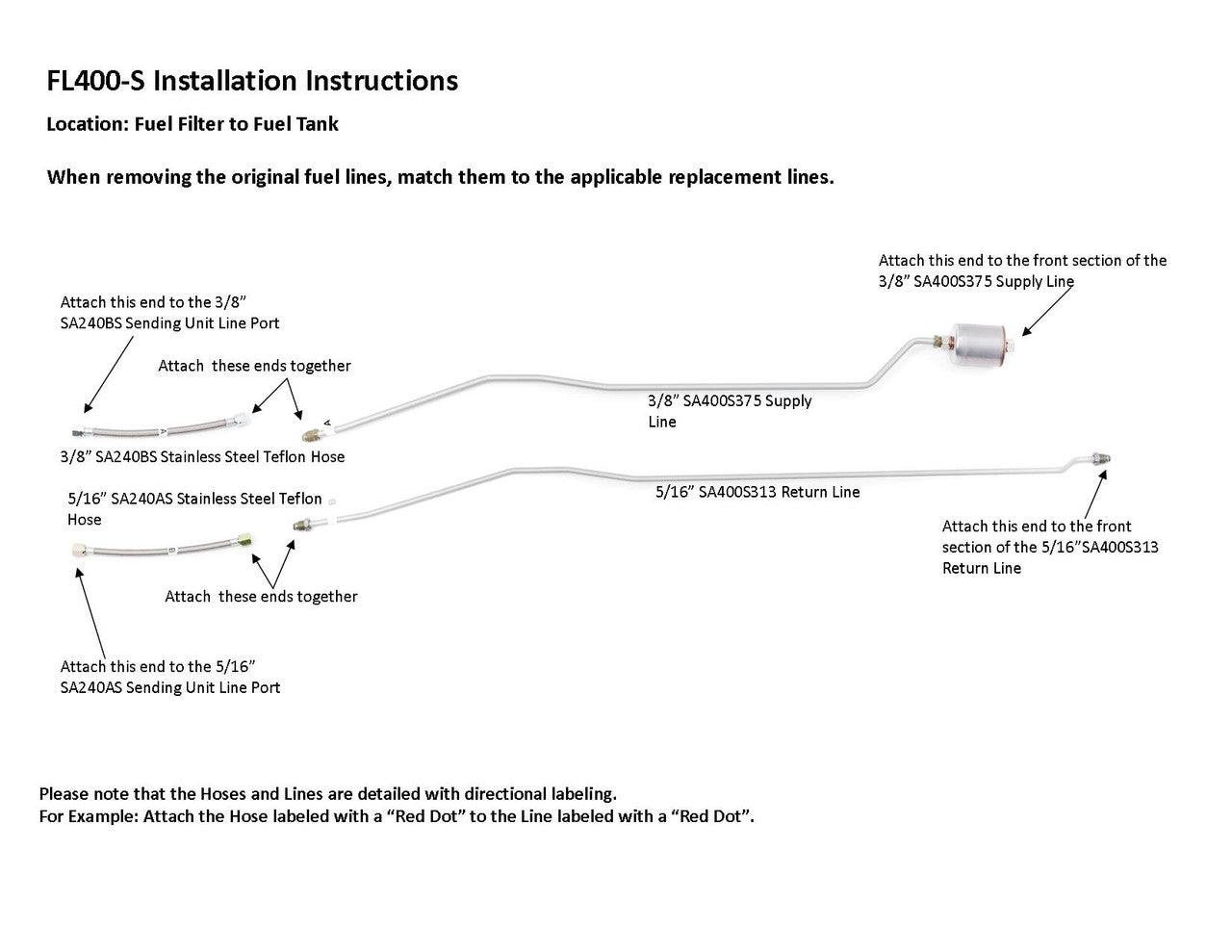 1 supply line 3/8", 1 return line 5/16", hoses to sending unit connection, 1 fuel filter